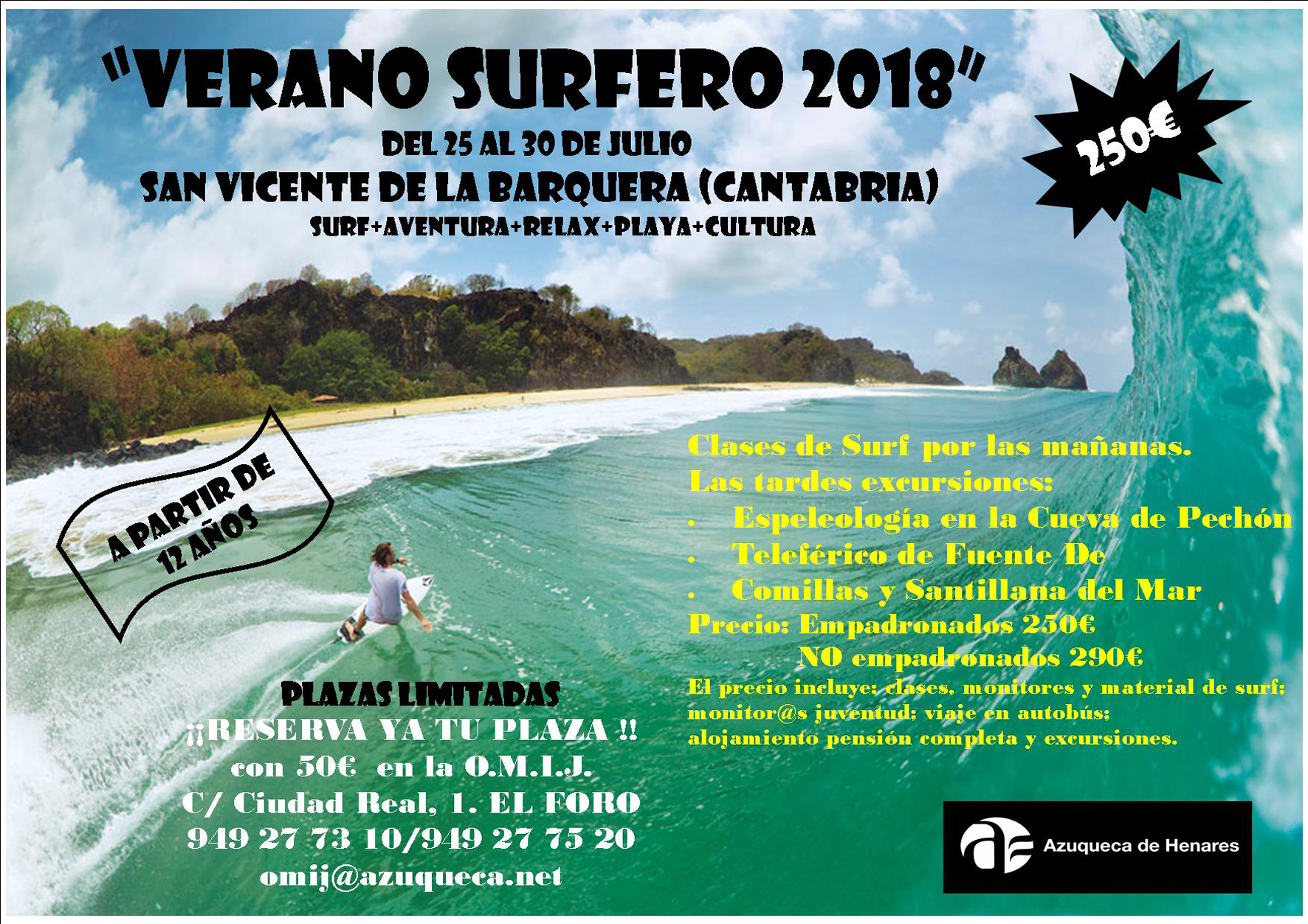 Las plazas son limitadas y se pueden reservar por 50 euros en la Oficina Municipal de Información Juvenil (OMIJ), en el correo AQUÍ.