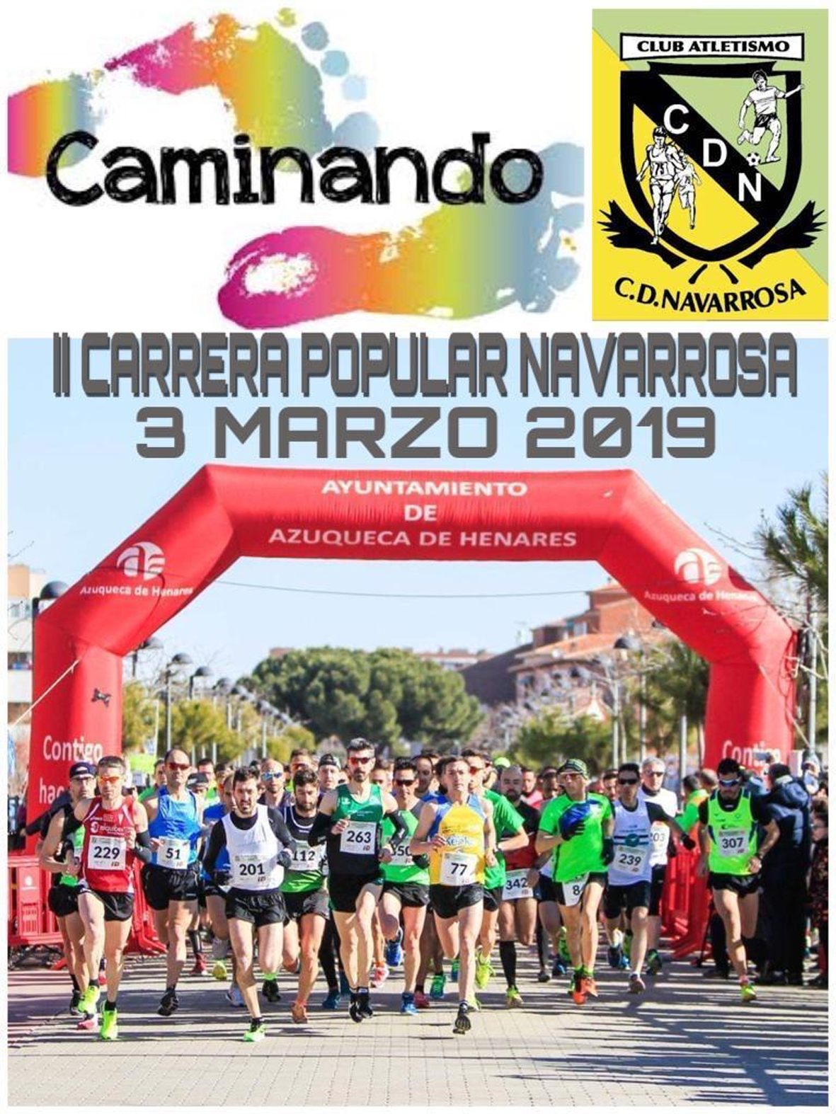 Azuqueca de Henares acogerá el domingo 3 de marzo la segunda Carrera Popular Navarrosa, que organiza el Club Deportivo Navarrosa, con la colaboración del Ayuntamiento de Azuqueca de Henares. Se trata de una prueba solidaria a beneficio de Caminando, una asociación sin ánimo de lucro que persigue la inclusión y la mejora de la calidad de vida de los niños y niñas con discapacidad y sus familias. En la primera edición, se rondaron los 450 dorsales y se entregó una recaudación de 3.000 euros a Caminando. Esta cita contempla dos distancias, 5 y 10 kilómetros, por un circuito urbano con salida (11 h.) y meta en la plaza de Europa (intersección de las avenidas de Alcalá y de Los Escritores). En ambos casos, la cuota de inscripción es de 11 euros y se puede formalizar online (pinche AQUÍ) hasta el jueves 28 de febrero o completar las plazas disponibles (600, 300 en cada modalidad). En caso de quedar dorsales libres, se admitirán inscripciones el mismo día de la carrera con un precio de 15 euros.En cuanto a los premios, se entregarán trofeos a los tres primeros clasificados de cada categoría, en masculino y femenino, así como en local, masculino y femenino. Además, con los números de los dorsales, se realizará un sorteo de distintos regalos subvencionados por los patrocinadores.