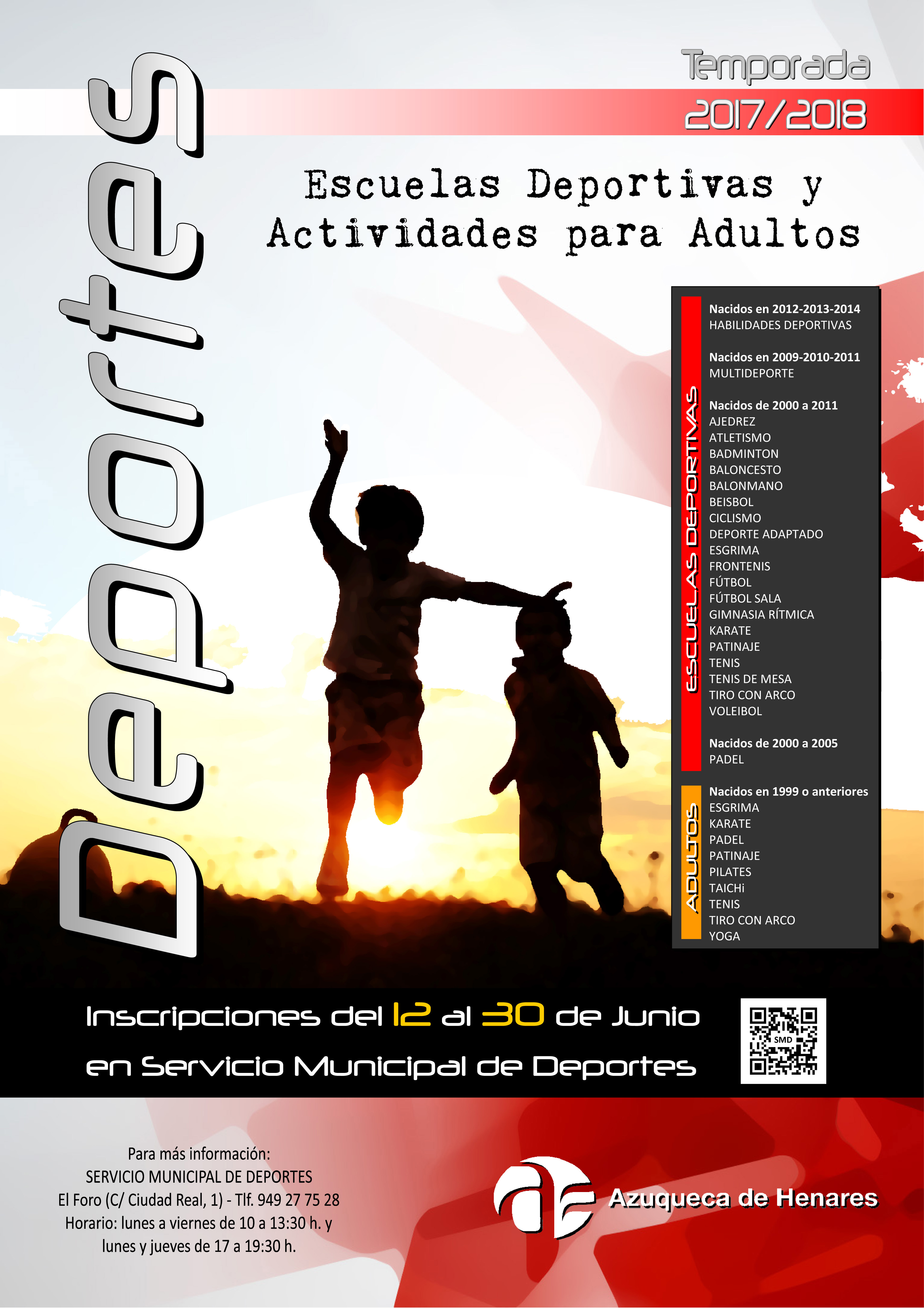De cara a la temporada deportiva 2017/2018, el Ayuntamiento de Azuqueca de Henares va a bonificar las actividades con un descuento de 30 euros en el precio del primer trimestre a los alumnos de las Escuelas Deportivas (menores de 18 años). "El deporte es una de las prioridades de este Ayuntamiento porque, además de favorecer hábitos saludables, inculca valores tan importantes como el juego limpio, el respeto y compañerismo, y es una herramienta fundamental para avanzar hacia la igualdad, la integración y la creación de ciudad", explica el concejal de Deportes, Sergio de Luz. "Con este descuento, se pretende facilitar el acceso en especial de niños y jóvenes, para que puedan practicar su disciplina favorita con unos precios económicos y asequibles", añade el edil.El próximo curso, el Ayuntamiento lanza un total de 22 Escuelas Municipales: para los menores de 6 años, Habilidades deportivas (nacidos en 2011, 2012 y 2013) y Multideporte (nacidos 2008, 2009 y 2010), y para el alumnado de 6 a 17 años, Ajedrez, Atletismo, Bádminton, Baloncesto, Balonmano, Béisbol, Ciclismo, Deporte adaptado para personas con discapacidad, Esgrima, Frontenis, Fútbol, Fútbol sala, Gimnasia rítmica, Kárate, Patinaje, Pádel, Tenis, Tenis de mesa, Tiro con arco y Voleibol. En cuanto a la oferta para los mayores de edad, se puede elegir entre Esgrima, Kárate, Pádel, Patinaje, Pilates, Taichi, Tenis, Tiro con arco y Yoga.Inscripciones, a partir del lunes 12El plazo de inscripción en la temporada 2017/2018 estará abierto del 12 al 30 de junio. Las personas interesadas deben dirigirse a la oficina del Servicio Municipal de Deportes (SMD), ubicada en la planta baja de El Foro.Más información, pinchando AQUÍ.