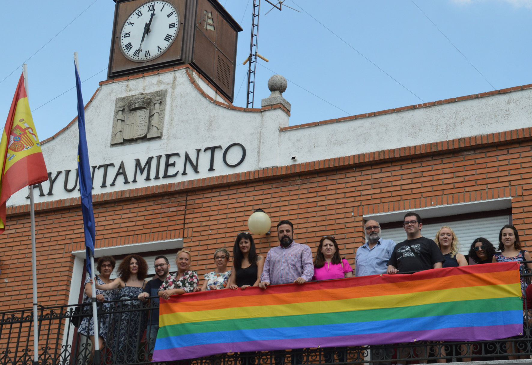 La bandera arcoíris, símbolo del colectivo LGTBI, luce desde este lunes en el balcón del Ayuntamiento de Azuqueca de Henares. "Apostamos por una Azuqueca tolerante, solidaria y diversa", ha dicho el alcalde, José Luis Blanco, que ha destacado el trabajo que realiza el colectivo local EACEC El Contenedor para reivindicar la igualdad y los derechos del colectivo LGTBI.Este año, con motivo de la celebración del Orgullo 2017, el Ayuntamiento y esta asociación han diseñado un programa de actividades que comenzaba el 2 de junio con la proyección en la sala de cine del EJE de la película 'De chica en chica',en el marco del Ciclo de cine LGTB. En viernes sucesivos se han proyectado 'A primera vista vista', 'Freeheld, un amor incondicional' y '3 generaciones' y el ciclo se cerrará el próximo viernes, día 30, con 'Moonlight'.Además, hasta el viernes, se puede visitar en la Casa de la Cultura la exposición 'Arco Iris en Rusia. Crónica de un viaje a San Petersburgo', de Alberto M. Centenera, que se inauguraba el pasado miércoles, día 21, coincidiendo con la celebración de la charla 'Refugiadas y migrantes LGTBI. Un acercamiento a su situación' y la proyección de los documentales sobre Túnez y Rusia de la serie 'La Primavera Rosa'. El 9 de junio de 2016, el Pleno del Ayuntamiento de Azuqueca aprobó unanimidad una moción presentada por los grupos municipales del PSOE y de Ciudadanos con el fin de prevenir la discriminación por motivos de orientación sexual o afectiva y para favorecer la visibilidad de la diversidad sexual.