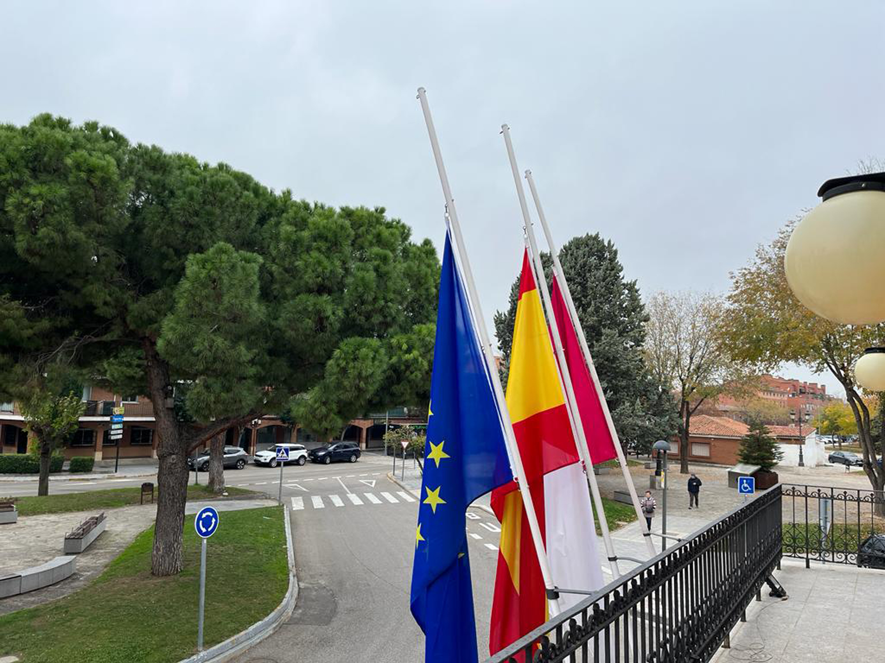 Banderas a medio asta en el Ayuntamiento. Fotografía: Ayuntamiento de Azuqueca