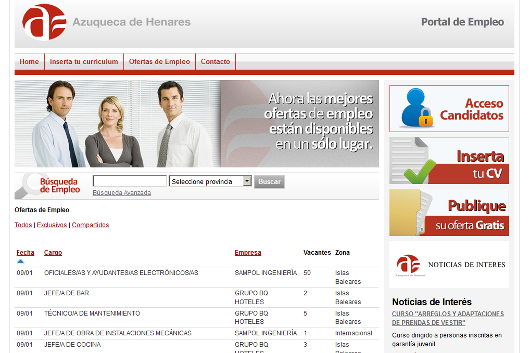 En 2016, se han incorporado al Portal de Empleo del Ayuntamiento de Azuqueca de Henares 879 nuevos usuarios, con lo que son ya 7.208 las personas registradas. Durante el último año, este servicio municipal recibió 113 ofertas de empresas, que sumaron un total de 341 puestos de trabajo.El portal, al que se puede acceder a través de la página web portaldeempleo.azuqueca.es, se puso en marcha en 2011 y permite que las personas en búsqueda de empleo inserten su currículun vitae y consulten las ofertas disponibles para inscribirse y poder participar en el proceso selectivo de personal."El Portal de Empleo -explica el alcalde, José Luis Blanco- es un servicio que complementa la labor de la Agencia Municipal de Colocación y cuyo funcionamiento responde a la preocupación del Ayuntamiento para ayudar a la ciudadanía en materia laboral". En el caso de las empresas, se ofrece apoyo en la selección de trabajadores, además de asesoramiento sobre la tipología de contratos, subvenciones y descuentos en las cuotas de la Seguridad Social. Los desempleados pueden acceder a itinerarios personalizados, a herramientas en la búsqueda de empleo, la mejora de la empleabilidad y a la intermediación en la búsqueda de empleo.