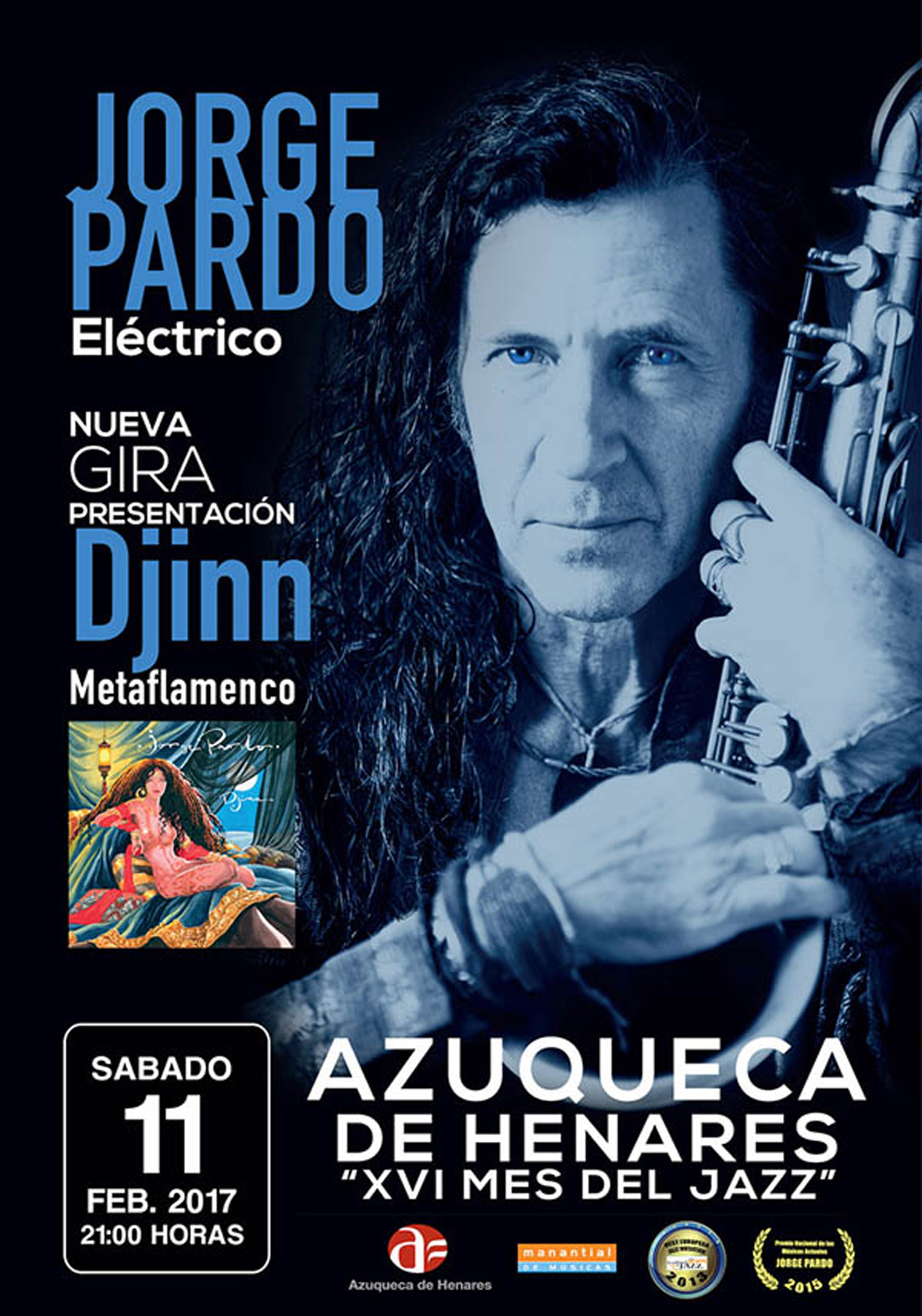 El XVI Mes del Jazz continúa este fin de semana con la segunda de las cuatro actuaciones programadas por el Ayuntamiento de Azuqueca de Henares a lo largo de febrero. El sábado 11 de febrero, la Casa de la Cultura recibe a Jorge Pardo, Premio Nacional de las Músicas Actuales 2015, con su proyecto 'Djinn Electric Band Quinteto'. "Esta segunda propuesta pretende mostrar otra faceta del jazz, en concreto, su evolución al mezclarse y fusionarse con otros estilos, en este caso, el flamenco", explica la concejala de Cultura, Sagrario Bravo.El concierto comienza a las 21 horas y el precio es de 8,15 euros, para los titulares de la Tarjeta Ciudadana, y 9,95 euros, para el resto de espectadores. La venta anticipada está disponible en la página web municipal (pinche aquí) y en los cajeros ciudadanos. Además, se pueden adquirir el mismo sábado, a partir de las 19:30 horas, en taquilla.Cine y fotografíaEl viernes 10, continúa el Ciclo de Cine y Música III con 'Omega', un documental sobre el proceso de creación del disco 'Omega', que reunió al cantante Enrique Morente con el grupo 'Lagartija Nick'. La proyección comienza a las 20:30 horas en la sala del Espacio Jove Europeo (EJE). Además, la cartelera comercial del EJE incluye dos títulos: 'Blinky Bill, el koala' (sábado 11 y domingo 12, a las 18 horas) y 'Assassin's Creed' (viernes 10, sábado 11 y domingo 12, a las 21 horas). Las entradas se pueden comprar en la página web (pinche aquí), en los cajeros ciudadanos y en la taquilla del EJE, una hora y media antes del pase. El precio es de 3 euros para adultos y 2 para niños en el caso de los titulares de la Tarjeta Ciudadana y 3,80 y 2,45 para el resto.Por último, el viernes, a las 19 horas, se inaugura en la sala de exposiciones de la Casa de la Cultura 'Glitch me a River', una muestra de fotografía y arte digital de Pablo Hernández que se puede visitar hasta el 27 de febrero. Además, continúa la muestra con los carteles realizados por el alumnado de la Escuela de Arte de Guadalajara para promocionar el XVI Mes del Jazz.