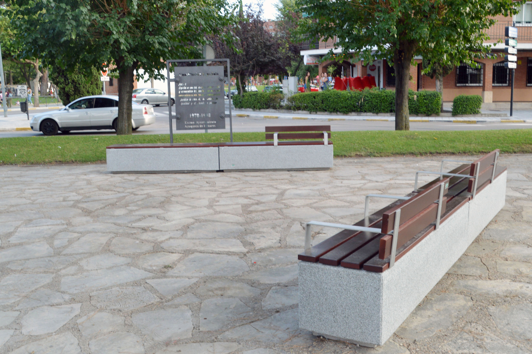 La plaza de La Constitución -tanto en la parte situada frente al Ayuntamiento como en la zona paralela a la avenida de Meco-, cuenta con unos nuevos bancos. Los antiguos, de láminas de madera, han sido sustituidos por un modelo de hormigón gris recubierto de una estructura de madera. "En total, se han instalado 27 bancos y 30 sillas, dado que el anterior mobiliario estaba deteriorado por el paso del tiempo y el uso", explica Juan Pablo Román, concejal de Urbanismo. La inversión en esta actuación programada por el Ayuntamiento, que incluye también cuatro nuevas papeleras, va a suponer una inversión de 28.059,30 euros. Los elementos han sido suministrados por la empresa Benito Urban, SL.