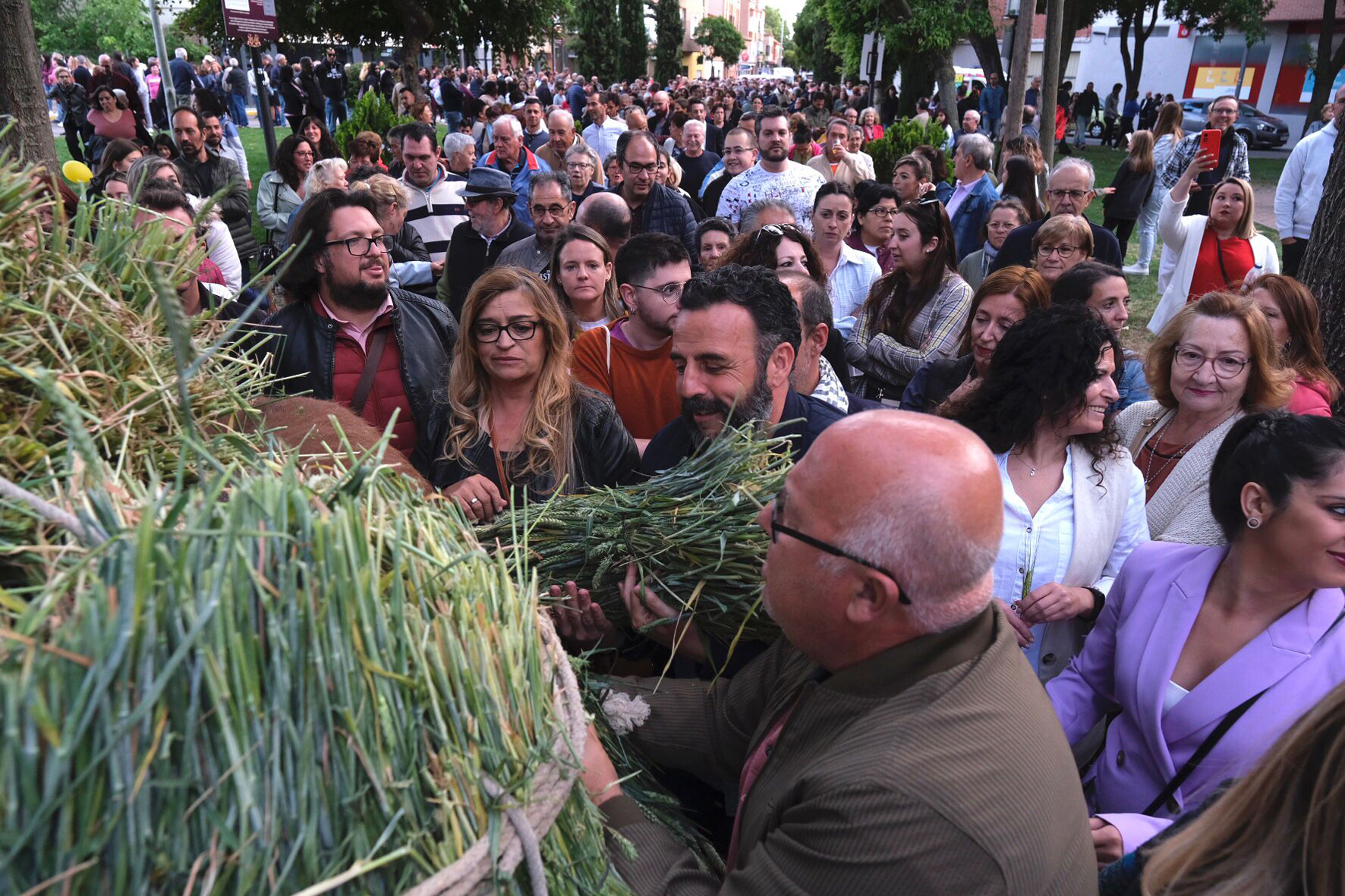 La comitiva, formada por un carro que transportaba el mosto (600 litros) y los bollos (6.000 unidades) que han repartido entre el público asistente personajes caracterizados de labradores, ha salido de la plaza de La Constitución. Después de completar un recorrido por las calles de Azuqueca, amenizado por el ritmo de los dulzaineros azudenses El Pico del Lobo, ha llegado hasta el parque de La Ermita, donde se han repartido las espigas para entregarlas a las personas más queridas. A continuación, se ha ofrecido una degustación de migas, elaboradas por la Casa de Extremadura de Azuqueca, que ha preparado 250 kilos.
