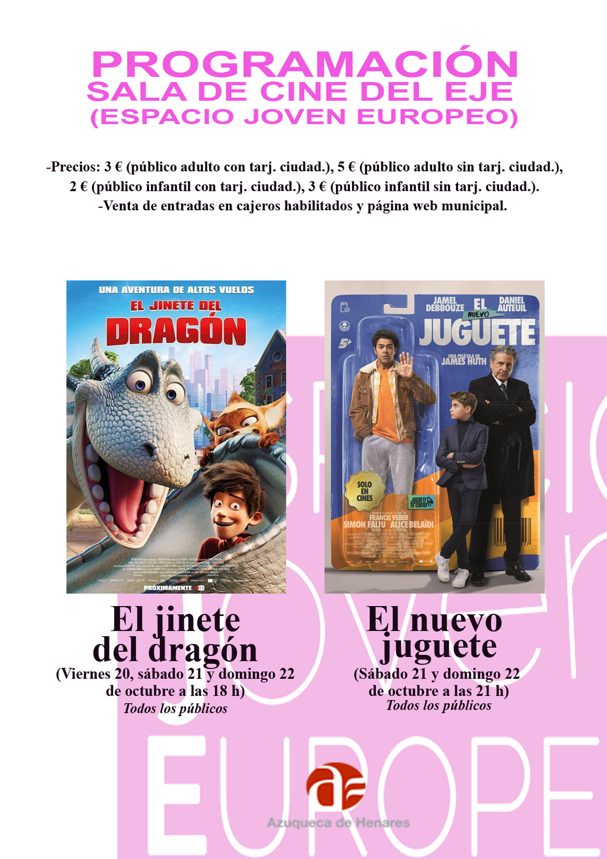 En cuanto al cine, el ciclo dedicado este mes a la Comedia clásica propone para este viernes, a las 21 horas, en la sala del Espacio Joven Europeo (EJE) la comedia satírica 'Uno, dos, tres'. Las entradas cuestan 1 euros y están a la venta en los cajeros ciudadanos y AQUÍ. La cartelera comercial incluye la cinta familiar 'El jinete del dragón (viernes, sábado y domingo, a las 18 horas) y 'El nuevo juguete', clasificada para todos los públicos, el sábado y el domingo, a las 21 horas. En este caso, las entradas cuestan 2 euros para menores con Tarjeta Ciudadana (3 sin ella) y 3 para adultos con Tarjeta (5 para queienes no sean titulares de este documento) y están a la venta en los cajeros ciudadanos y AQUÍ.