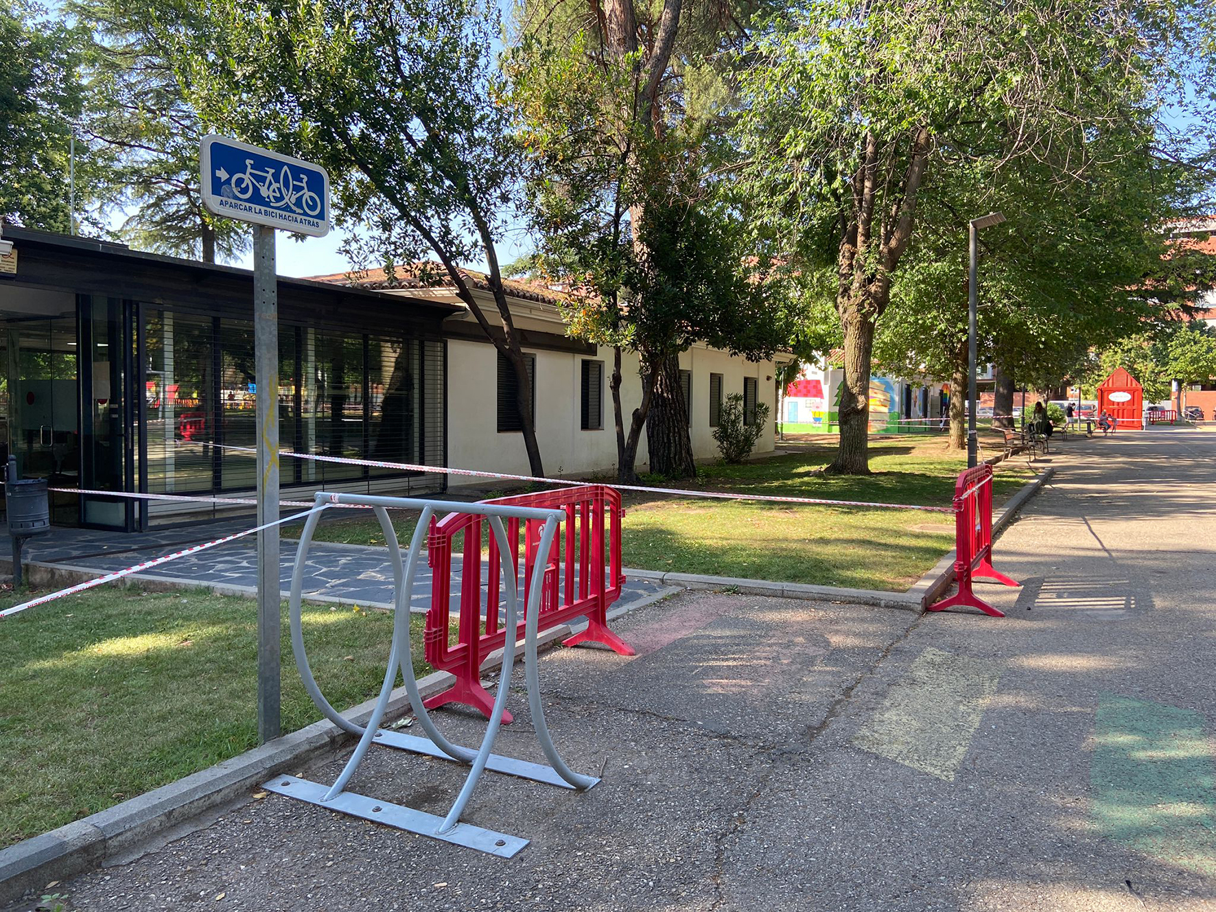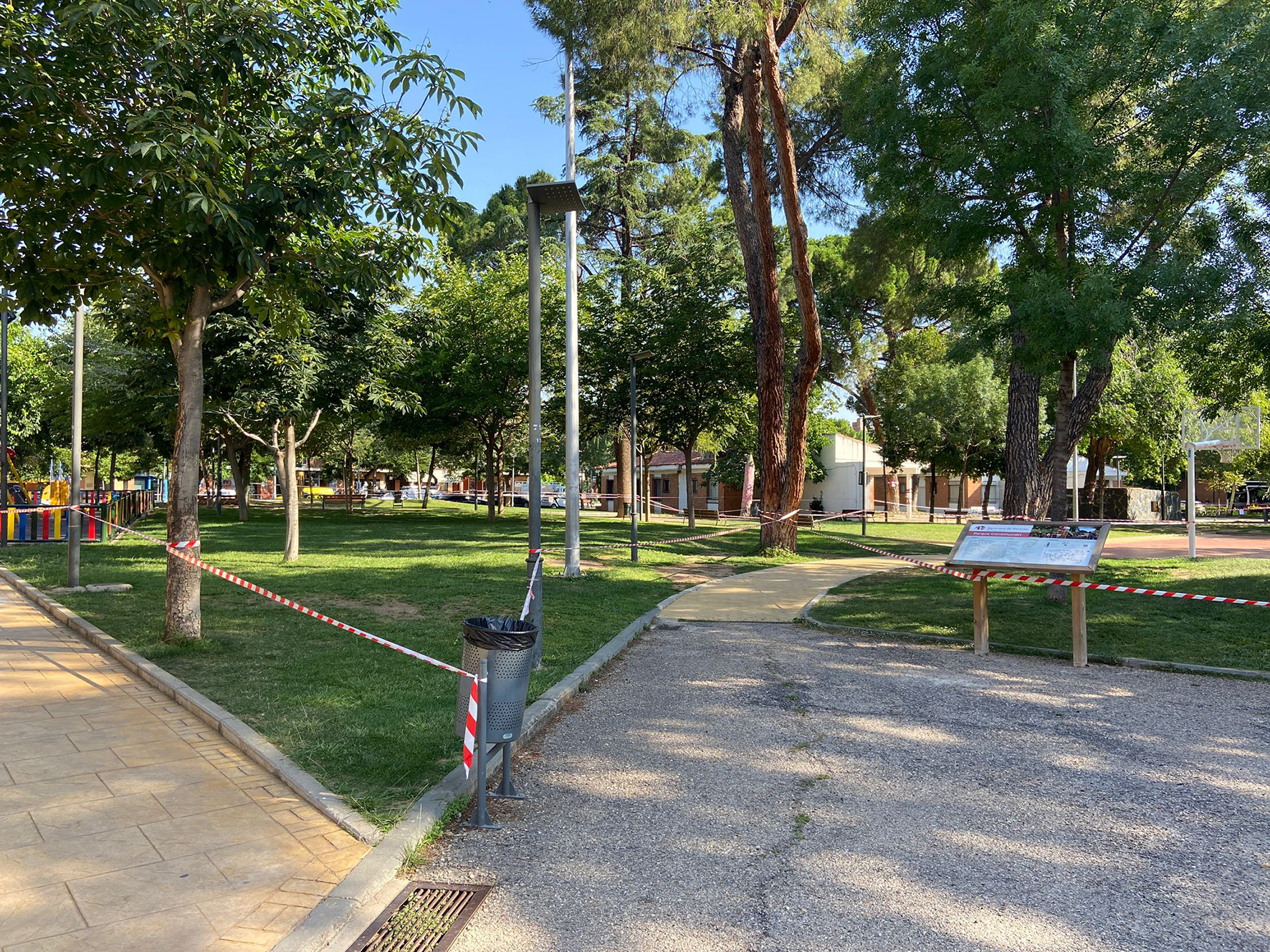 Trabajos de fumigación ya realizados y señalizados en el parque de La Constitución. Fotografías: Ayuntamiento de Azuqueca