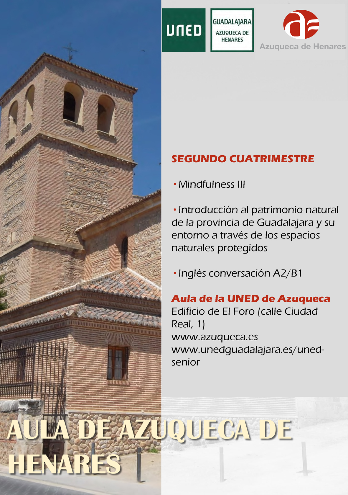De cara al segundo cuatrimestre, la UNED (Universidad de Educación a Distancia) tiene abierto el plazo de inscripción en los tres cursos que se van a impartir en el Aula de Azuqueca, ubicada en el edificio de El Foro, en el marco del programa UNED Senior. Inglés conversación, patrimonio natural y mindfulness son las propuestas ofertadas, todas con 30 horas de duración. La oferta se dirige a mayores de 55 años y la matriculación, con un precio en todos los casos de 50 euros, se debe tramitar online (pinche AQUÍ) y finaliza el 19 de marzo o se completen las plazas disponibles.El segundo cuatrimestre arranca el 18 de febrero con Mindfulness III, a cargo de la profesora María del Mar Silva. Las clases se imparten hasta el 3 de junio de manera online los jueves, de 17 a 19 horas. En ellas, se realizarán ejercicios de interiorización, concentración y meditación siguiendo las prácticas del yoga mental y del pranayama, así como estiramientos del cuerpo.La asignatura 'Introducción al patrimonio natural de la provincia de Guadalajara y su entorno a través de los espacios naturales protegidos' comenzará el 23 de febrero y acabará el 4 de mayo. El profesor Ángel Vela ha programado tres módulos: dos teóricos, que se impartirán los martes de 17 a 19 horas, y un tercero, práctico con visitas a espacios naturales protegidos: Zona de Especial Conservación Henares (Azuqueca), Zona de Especial Protección para las Aves de la Campiña (Quer), Reserva Natural Lagunas de Puebla de Beleña y los parques naturales Sierra Norte de Guadalajara, Barranco del río Dulce y Alto Tajo.El curso de inglés conversación en los niveles A2 y B1 se desarrollará entre el 17 de marzo y el 30 de junio en modalidad online y presencial los miércoles, de 17 a 19 horas, en el aula 2. En las sesiones, con la profesora Elizabeth Anne Macioszek, se abordarán distintos temas como libros y películas, música o anécdotas.