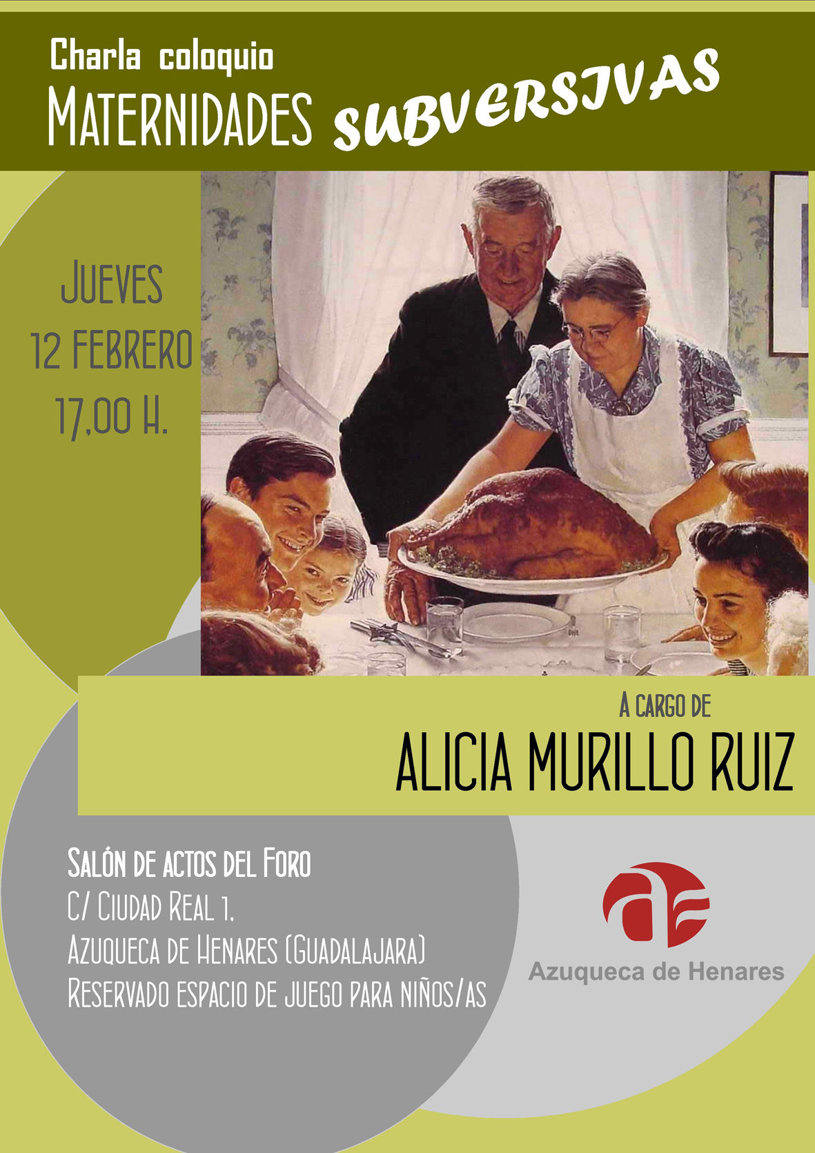 El Ayuntamiento de Azuqueca de Henares, a través del Centro de la Mujer, organiza el 12 de febrero una charla coloquio titulada 'Maternidades subversivas'. La actividad, que comienza a las 17 horas en el salón de actos de El Foro, contará con la presencia de Alicia Murillo Ruiz, activista feminista y artista y para participar es necesario inscribirse previamente en el Centro de la Mujer."Se trata de una sesión en la que, entre otros temas, se abordarán los derechos y deberes que acompañan a la maternidad y se revisará la situación de las familias en general y de las madres en particular mediante el análisis de aspectos sociales, económicos, legales, emocionales y físicos", avanza la concejala de Igualdad de Oportunidades, Sandra Yagüe, quien añade que "la maternidad es subversiva por definición si viene vivida desde el goce y el disfrute, desde la responsabilidad y la reivindicación, desde la conciencia y la información y, sobre todo, desde la reafirmación y el respeto a las decisiones".El aforo es limitado y las inscripciones ya pueden formalizarse en el Centro de la Mujer, ubicado en el número 4 de la calle Peña de Francia, o en el teléfono 949 27 73 46. El plazo se mantiene abierto hasta el mismo día 12 y, para facilitar la asistencia de las personas interesadas, se ofrece servicio de guardería.
