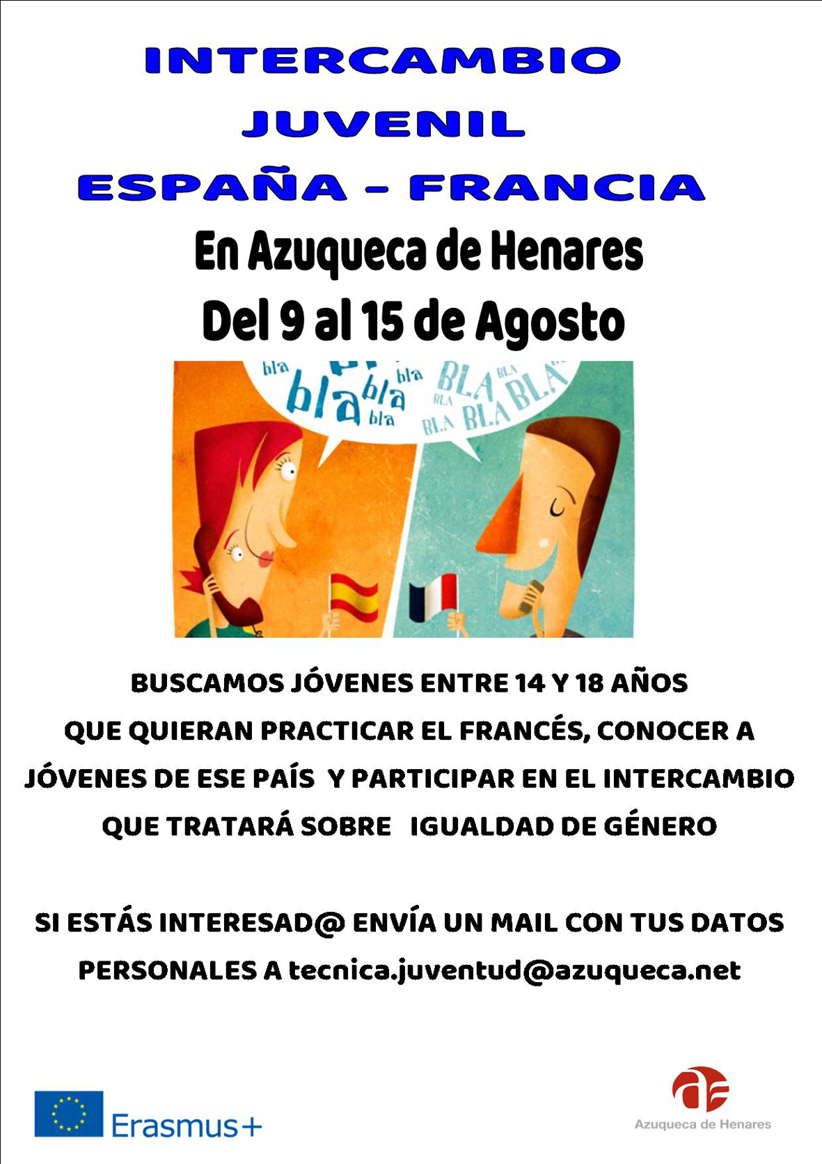 El Ayuntamiento de Azuqueca de Henares desarrolla por segundo año consecutivo un intercambio cultural con Francia dentro del programa 'Erasmus +' dirigido a jóvenes con edades comprendidas entre los 14 y los 18 años. "El verano pasado, un grupo de azudenses viajó hasta Pontonx sur l'Adour, localidad con la que estamos hermanados, y este año, se completa el proyecto con nuestra ciudad como anfitriona", explica la concejala de Juventud, Carmen Luque.La actividad se va a desarrollar entre el 9 y el 15 de agosto y se centrará en la igualdad de género. "A través de distintos talleres y propuestas de carácter lúdico, como, por ejemplo, la grabación de un vídeo, las y los jóvenes van a analizar los estereotipos asociados a mujeres y a hombres con el objetivo de desmontarlos y aprender a evitarlos", avanza la edil. "Además, se trata de una magnífica oportunidad para que los y las participantes de Azuqueca mejoren sus competencias lingüísticas en francés y puedan conocer otra cultura y costumbres", añade.La participación en este intercambio es gratuita y está abierta. Las personas interesadas -jóvenes de 14 a 18 años- deben enviar un correo electrónico a la dirección
