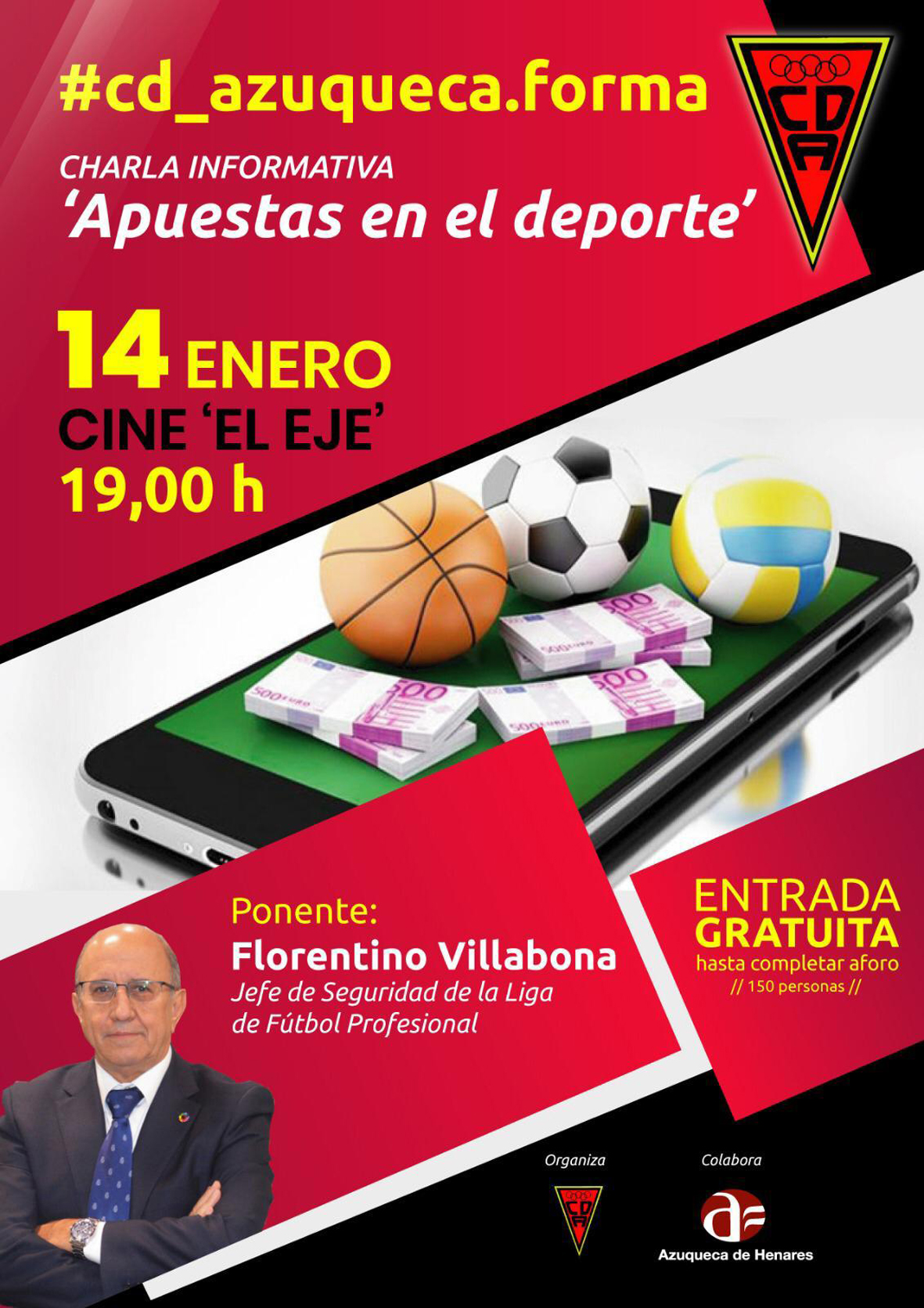 El Club Deportivo Azuqueca, cuyo primer equipo milita en el grupo XVIII de la liga de Tercera División, ha puesto en marcha, con la colaboración del Ayuntamiento, un ciclo de conferencias que arranca este martes, 14 de enero, con la charla 'Apuestas en el deporte'. "Se trata de una iniciativa con la que el club pretende abordar aspectos relacionados con el fútbol, pero desde una perspectiva más amplia e integradora con el objetivo de interesar a la ciudadanía en general y no solo a los aficionados y aficionadas", explica el concejal de Retos Deportivos, Enrique Pérez, quien felicita a los rojinegros por la idea.La actividad comienza a las 19 horas en la sala de cine del Espacio Joven Europeo (EJE) y contará con Florentino Villabona, jefe de seguridad de la Liga de Fútbol Profesional, como ponente. La entrada es gratuita hasta completar aforo. "Las apuestas deportivas están generando preocupación y alerta entre la población debido a que están derivando en casos de ludopatía y, en ocasiones, en jóvenes y adolescentes", explica el edil. "El Club Deportivo Azuqueca y el Ayuntamiento compartimos esa preocupación y, en ese contexto, impulsamos esta charla", añade.Enrique Pérez recuerda que el Pleno del Ayuntamiento aprobó por unanimidad en octubre de 2018, a partir de una moción presentada por IU, un acuerdo en el que, entre otro puntos, se recogía la realización de campañas de sensibilización dirigidas a los más jóvenes.