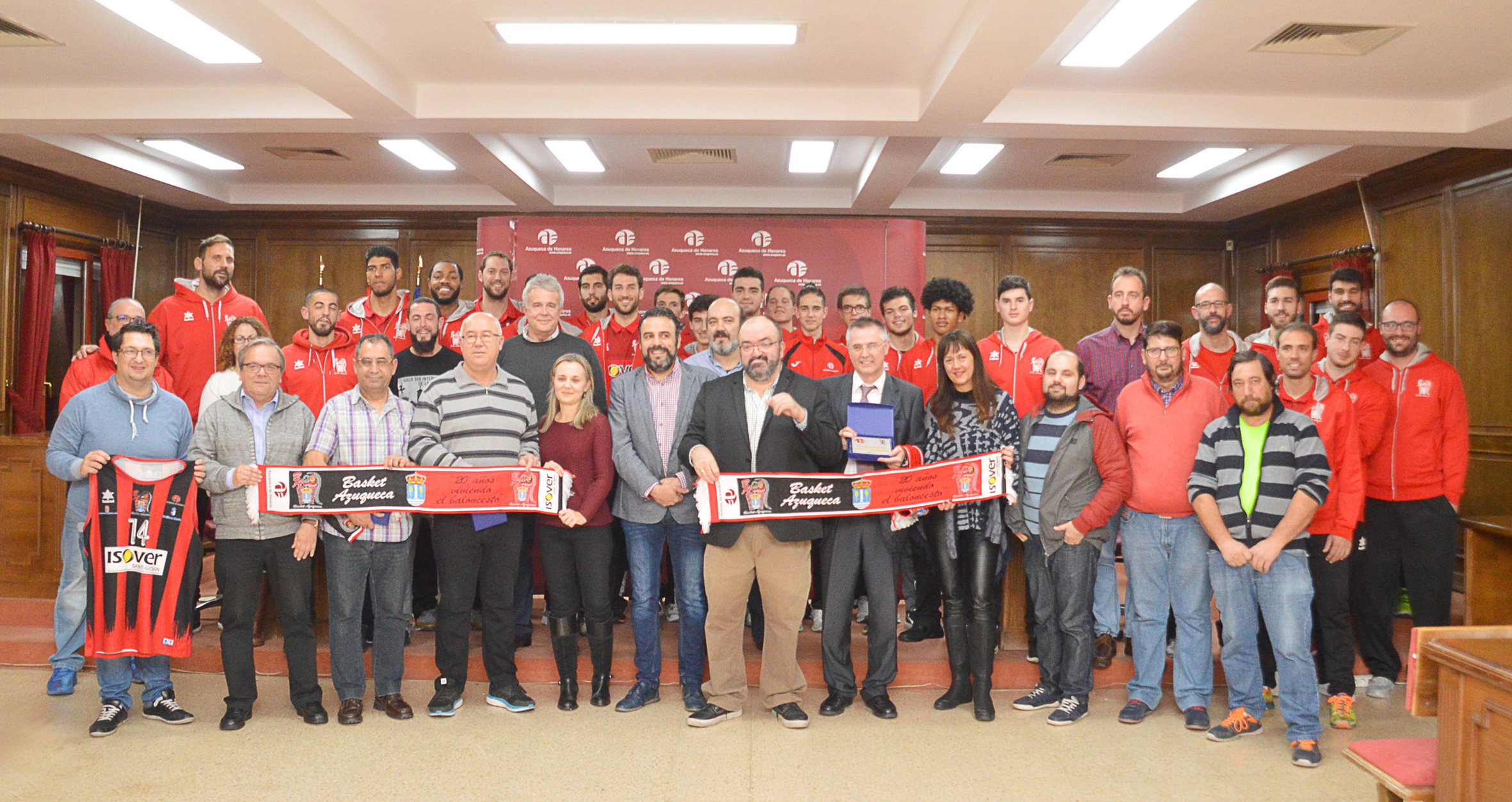 El salón de Plenos del Ayuntamiento de Azuqueca de Henares acogía en la tarde del jueves 14 de diciembre un acto convocado con motivo del 20 aniversario de la constitución del club Basket Azuqueca. Junto al presidente actual del club, Manuel Pérez, y dos expresidentes, Jesús Díaz y Jesús de la Rúa, estuvieron jugadores de la primera plantilla y el equipo actual de Liga EBA y de las categorías Sub 21 y junior, además del director general del patrocinador, Isover Saint Gobain, Javier Fernández Campal. También se sumaron al acto de celebración el concejal de Deportes, representantes de los grupos municipales del PP y de Ciudadanos y de la delegación azudense de la Asociación Española contra el Cáncer (AECC), organización con la que colabora el Club esta temporada.El alcalde, José Luis Blanco, felicitó al club por el aniversario y mostró el "orgullo del Ayuntamiento" por la actividad desarrollada durante estas dos décadas en la promoción del deporte y en la cohesión de la ciudad. "Apoyamos al basket y al resto de deportes por sus valores, por su importancia para el bienestar y la salud de los ciudadanos y también por su papel generador de lazos entre las personas", señala el primer edil. Durante el acto, los participantes recordaron anécdotas e hitos del club desde su fundación. Según ha recordado el club a través de su perfil de Facebook, el 11 de diciembre de 1997, "Jesús Díaz Bueno y su junta directiva firmaban el acta fundacional del Club Deportivo Basket Azuqueca". "Queremos dar las gracias a Jesús y a todos los presidentes, directivos, jugadores, técnicos y todas las personas, empresas, negocios e instituciones que han ayudado al club a llegar hasta hoy. Gracias a ellos, podemos decir que somos el club de baloncesto más veterano de la provincia de Guadalajara", añade el club en esta red social.