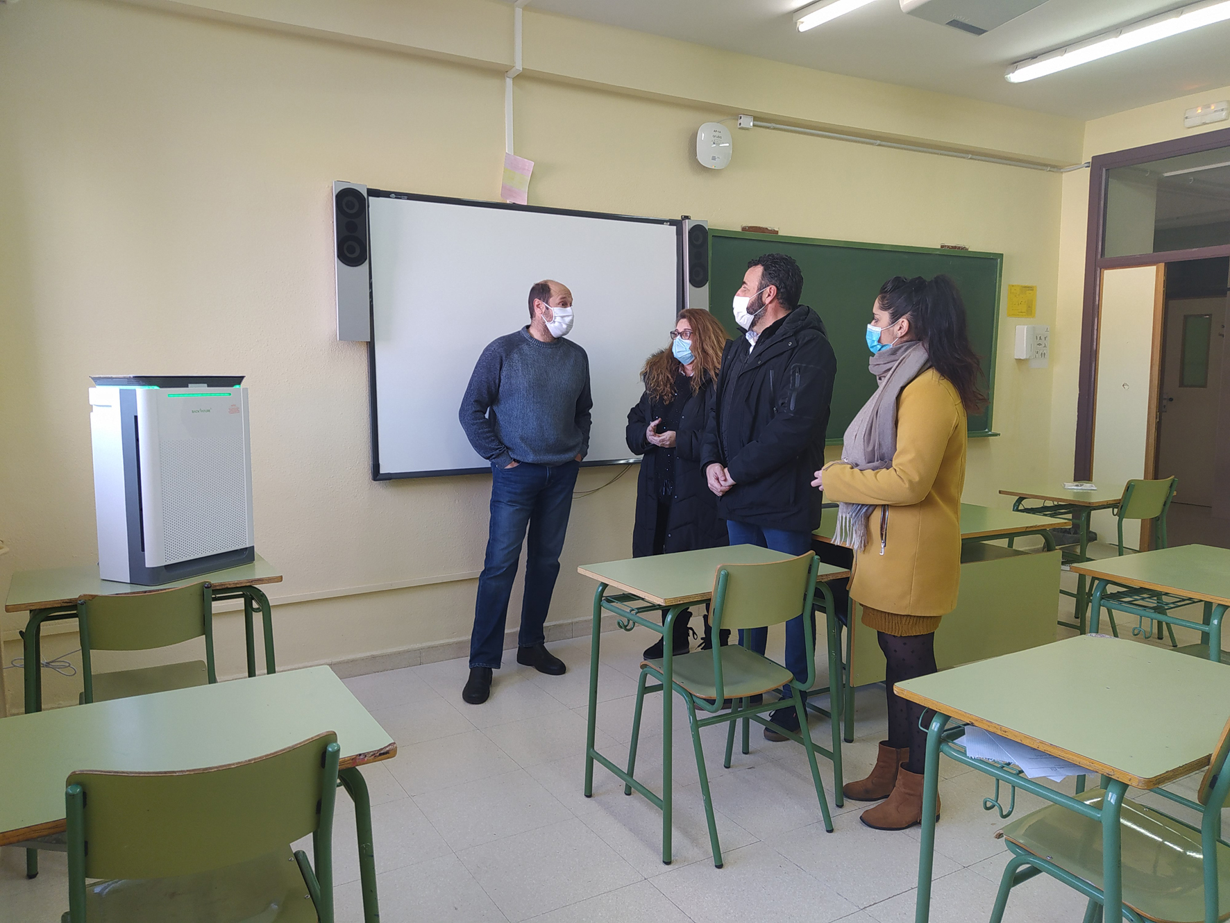 Los filtros HEPA adquiridos por el Ayuntamiento de Azuqueca de Henares para los colegios, institutos y escuelas infantiles de la ciudad se están instalando en las 354 aulas de los centros. La empresa adjudicataria del suministro, VG Servifarma Global, ha entregado la totalidad de las unidades, tras un primer envío, hace un mes, de las 20 primeras, que pusieron a disposición de las cuatro escuelas infantiles municipales. El alcalde azudense, José Luis Blanco, acompañado de la concejala de Educación Global, Susana Santiago, y de la responsable de Desarrollo Saludable, Charo Martín, han visitado este miércoles, 30 de diciembre, el IES Arcipreste de Hita para comprobar, junto con el director, César San Juan, la instalación y funcionamiento de estos dispositivos. Está previsto que la instalación se complete en unos días, por lo que estarán disponibles para su uso en la vuelta a las clases, después de las vacaciones navideñas, el 11 de enero.