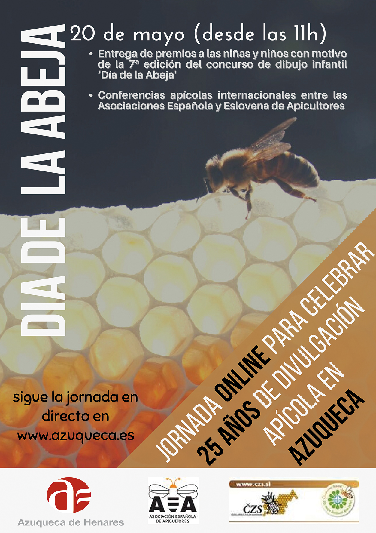 Coincidiendo con el Día de la Abeja, que se conmemora el 20 de mayo, y para celebrar el 25 aniversario del Aula Apícola de Azuqueca de Henares, el Ayuntamiento ha organizado una jornada virtual de divulgación, con una charla-coloquio en la que participarán la Asociación Española de Apicultores y su homóloga eslovena, ambas reunidas a través de la Embajada de Eslovenia en España.