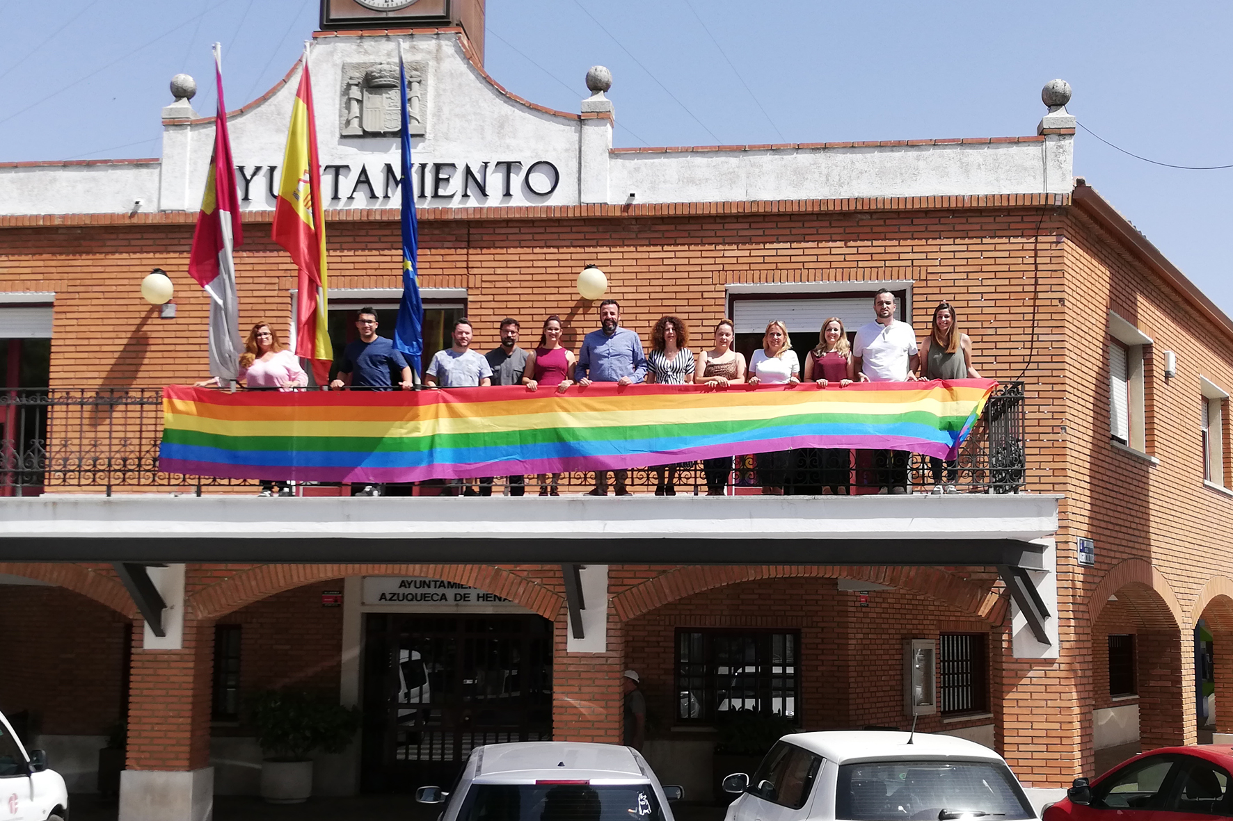 Como señal de apoyo y de visibilización del colectivo LGTBI, el Ayuntamiento de Azuqueca de Henares ha colocado este mediodía la bandera arcoíris en su balcón principal coincidiendo con el Día del Orgullo, que se conmemora cada 28 de junio. En el acto, ha participado el alcalde azudense, José Luis Blanco, junto con concejales del equipo de gobierno y de los grupos municipales del Partido Popular y de Unidas-Izquierda Unida, y Alberto Centenera, de la asociación EACEC."Es un sencillo gesto con el que, una vez más, ponemos de manifiesto nuestro compromiso con la igualdad de oportunidades para todas y todos y, en este caso más concreto, con independencia de la orientación sexual o afectiva de las personas", señala el primer edil. La colocación de la bandera LGTBI es uno de los actos enmarcados en la programación del Orgullo organizadas por la asociación azudense EACEC, con la colaboración del Ayuntamiento. El miércoles 26, se proyectó en el salón de actos de la Casa de la Cultura el audiovisual 'Mi huella de vida', seguido de un coloquio. Además, este jueves, se inauguró en la entrada de la Casa de la Cultura la exposición del primer concurso de fotografía LGTBI convocado por EACEC con la temática 'Besos' (visitas, hasta el 3 de julio).