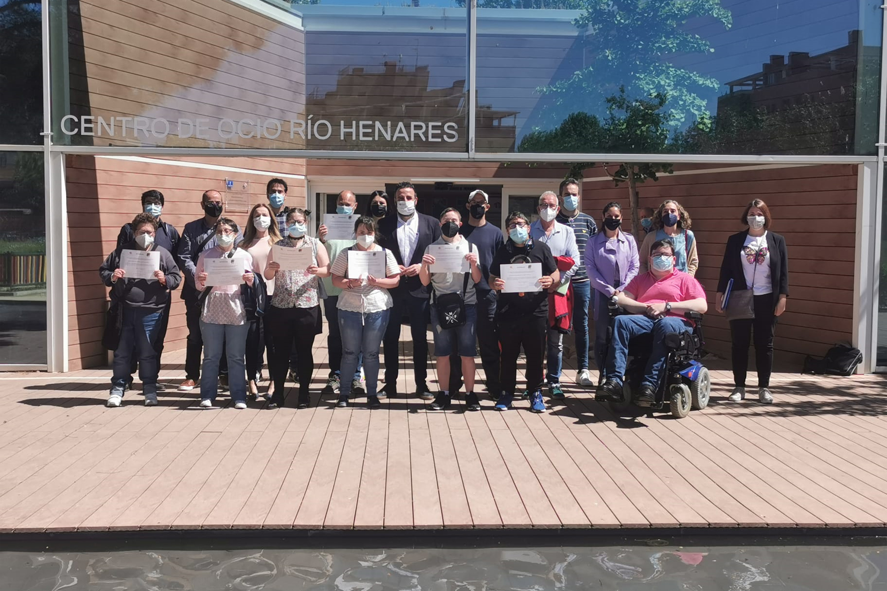 El alcalde de Azuqueca de Henares, José Luis Blanco, ha entregado este martes, 18 de mayo, los diplomas del curso 'Accesibilidad universal y accesibilidad cognitiva' que ha impulsado el Ayuntamiento en el marco del programa municipal 'Azuqueca Accesible'. La sesión ha contado con la participación de 10 personas con discapacidad intelectual, además de dos personas de apoyo, todas ellas de la asociación local ADA. También han estado presentes la coordinadora del Equipo de Gobierno, Susana Santiago, la concejala de Igualdad de Oportunidades, Piedad Agudo, asi como los ediles de Buen Gobierno, Álvaro Cuevas, y de Innovación Urbana, Yolanda Rodríguez; el presidente de ADA, José Luis Herreruela, y personal técnico del Ayuntamiento.Esta jornada técnica, impartida por dos formadores -uno de AFANIAS y otro de 100x100 Accesible- en el Centro de Ocio Río Henares, ha abordado diferentes conceptos relacionados con la accesibilidad, que puede ser física -para desplazamientos en entornos construidos, tanto urbanos como edificados- y cognitiva -para hacer más comprensibles los espacios en entornos y edificios y facilitar la orientación a personas con discapacidad intelectual, mayores o de otros grupos con dificultad con el idioma-."El objetivo del curso es formar a personas con discapacidad intelectual para que puedan evaluar la accesibilidad cognitiva en entornos y edificios municipales y, de este modo, ayudar a detectar las dificultades de orientación y proponer soluciones", explica la concejala de Igualdad de Oportunidades, quien agradece "la colaboración, el interés y el compromiso" de la asociación ADA.Piedad Agudo señala que "con esta formación, se completa la primera fase del programa 'Azuqueca Accesible', que incluye tres más: evaluación, instalación de adaptaciones y mejoras, y, por último, control y seguimiento de la ejecución". El Ayuntamiento comenzará con el estudio de la accesibilidad en el Espacio Joven Europeo (EJE).