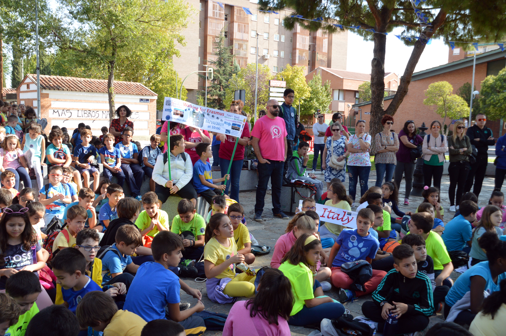 Las alumnas y alumnos de Educación Primaria del CEIP Maestra Plácida Herranz han participado esta mañana en una marcha convocada con motivo del 'Erasmus Day' en la que los siete colegios de los cinco países que comparten un proyecto Erasmus+ con el centro azudense han recorrido de manera simbólica la distancia entre ellos: 5.722 kilómetros. En Azuqueca, los estudiantes -los 523 de las 21 clases de Primaria- se han desplazado caminando desde el Maestra Plácida hasta el Ayuntamiento, en un recorrido que suma alrededor de tres kilómetros (ida y vuelta). Al llegar a la plaza de La Constitución, decorada con banderas europeas, el alcalde, José Luis Blanco, ha recibido una carta de 'Compromiso europeo' en la que se recogen 21 propuestas, una por cada clase del centro. Un representante de cada aula ha leído su frase en la plaza de La Constitución. En el acto han participado también alrededor de 60 madres y padres.Blanco ha señalado que recibía la carta como "una obligación a cumplir". El primer edil ha recordado a los niños que "Europa es muy importante en la vida de los ciudadanos y ciudadanas" y ha resaltado que "la construcción de Europa se hace por las personas, por las relaciones humanas". Ha recomendado a las niñas y niños que aprovechen las oportunidades que brinda Europa, que viajen y que conozcan a otros europeos y ha asegurado que el acto en la plaza de La Constitución "representa el hermanamiento con el resto de centros" que participan en el proyecto Erasmus+. El acto ha finalizado con todos los alumnos realizando un saludo inventado por ellos mismos para este programa.El proyecto Erasmus+ en el que participa el Maestra Plácida Herranz se denomina 'Una escuela europea para la formación de un nuevo ciudadano' y abarca el periodo 2017-2020. Los seis centros restantes son de Croacia, Francia, Italia y Polonia. Conocer y respetar la diversidad sociocultural, desarrollar actitudes de colaboración y cooperación, fortalecer la competencia comunicativa y fomentar las habilidades digitales son algunos de los objetivos de este proyecto europeo, en que también se involucra a todo el centro -alumnado, profesorado y familias-.