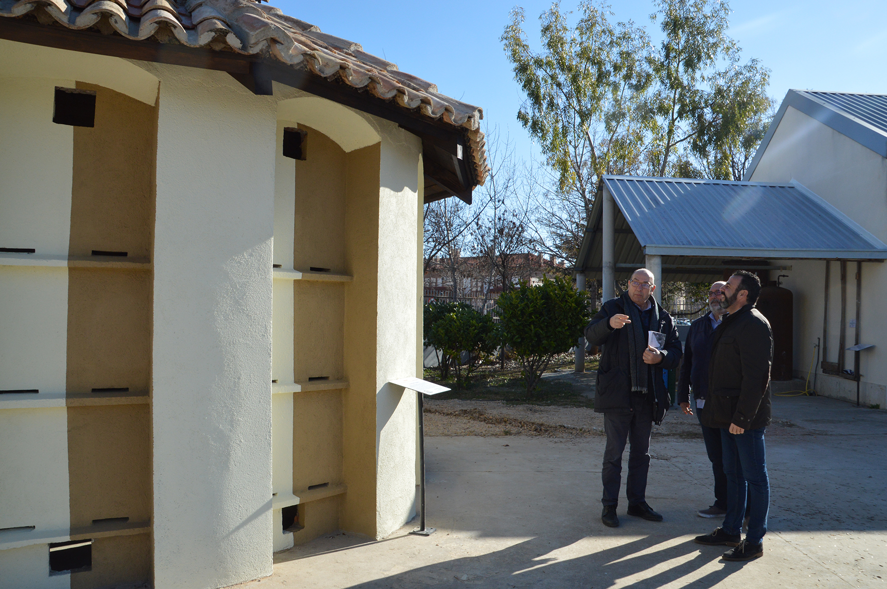 Los visitantes del Ecomuseo Municipal de las Apiculturas del Mundo (EMAM) tienen a su disposición el denominado colmenar 'España', una réplica de los ejemplares que datan del principios del siglo XX y de los que sólo hay registrados seis, todos ellos en distintos puntos de la provincia de Guadalajara. Las obras para acondicionar este elemento comenzaron el 2016 y en ellas han colaborado trabajadores de los Planes de Empleo. El colmenar 'España' se suma al aragonés de Ateca y al Arnal de Huesca, acondicionados también en este equipamiento de educación ambiental del Ayuntamiento de Azuqueca. El alcalde, José Luis Blanco, que ha visitado este miércoles el Ecomuseo ha señalado que "lo que quiere el Ayuntamiento es recuperar y dar a conocer todos los elementos relacionados con la apicultura, no sólo las colmenas y por ello, se trabaja desde hace tiempo en la creación del 'paseo de los colmenares', en el que habrá una representación de las colmenas de distintas zonas de España, pero también de otros países".Situado en el patio del Ecomuseo, el colmenar es una construcción con doce lados (dodecágono) con capacidad para 64 colmenas pareadas, en tres alturas. La instalación de puertas de cristal en el interior permite observar a las abejas en su trabajo diario y reducir la manipulación de las colmenas. La cerería de La PalomaAdemás, el Aula Apícola ha incorporado en una de las dependencias interiores una cerería. "El 30 de septiembre de 2018 se cerró la cerería que estaba en la calle La Paloma de Madrid, que daba servicio a la parroquia de la Virgen de la Paloma, y que había estado funcionando desde 1887", explica el responsable de la instalación, Agustín Arias. "En Azuqueca, nos interesamos por ella y hemos conseguido trasladar toda la cerería a nuestro Ecomuseo", detalla.