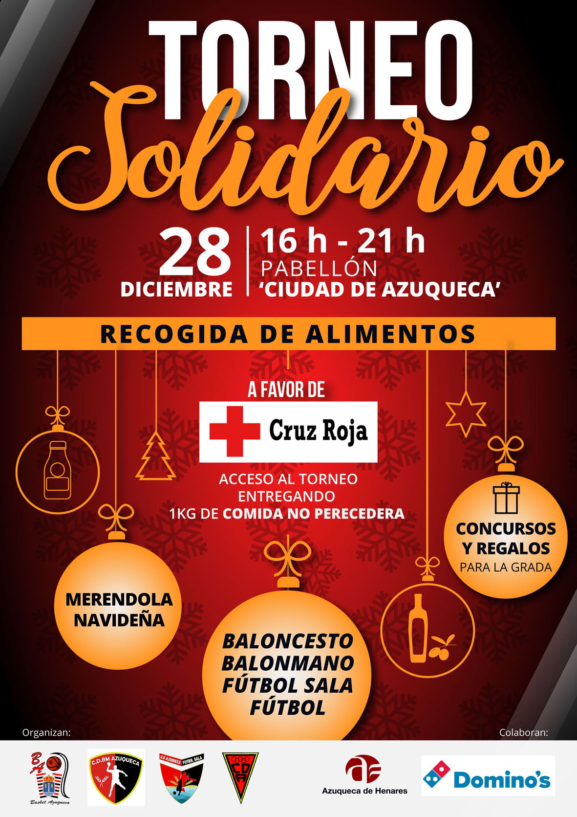 El polideportivo Ciudad de Azuqueca acoge el sábado 28 de diciembre, de 16 a 21 horas, un Torneo Solidario para la recogida de alimentos a favor de la Asamblea Local de Cruz Roja. El Ayuntamiento organiza esta actividad, junto con los clubes locales de baloncesto, balonmano, fútbol sala y fútbol. "Se trata de una actividad dirigida a todos los públicos", explica el concejal de Retos Deportivos, Enrique Pérez, quien agradece "el compromiso y la participación del Club Basket Azuqueca, el Club Deportivo Balonmano Azuqueca, la Unión Deportiva Azuqueca Fútbol Sala y del Club Deportivo Azuqueca".Las personas interesadas en presenciar el torneo "tendrán que entregar en la puerta de acceso al polideportivo un kilo de comida no perecedera como arroz, legumbres, pasta o conservas", aclara el edil. "Toda la comida se va a donar a Cruz Roja que desarrolla en el municipio varios programas de apoyo nutricional a población, adulta e infantil, en situación de vulnerabilidad o en situación de riesgo", añade Enrique Pérez.Además de las propuestas deportivas, se ofrecerá una merendola al público. "También se organizarán concursos y habrá regalos para la grada", avanza el concejal, al tiempo que lanza una invitación a la ciudadanía para que se sumen a la iniciativa y "llenar el polideportivo con ilusión y solidaridad".