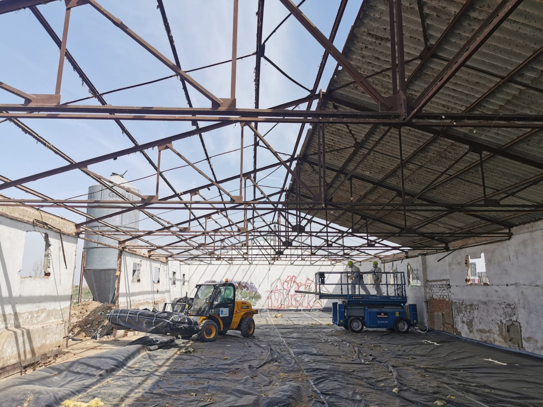 Ya está todo listo para iniciar los trabajos de derribo de las instalaciones agrícolas en desuso en la zona del parque del Vallejo. Se trata de una nave de 585 metros cuadrados de superficie, de una construcción anexa de otros 100 metros cuadrados y de un silo. También incluye en este proyecto la retirada de dos antiguas torres metálicas de tendido eléctrico, de otra construcción de 80 metros de superficie y el derribo de una piscina de una superficie similar, así como el acondicionamiento posterior del terreno.En los últimos días, se ha completado el desmontaje de la cubierta de las naves y la próxima semana comenzará el derribo de las construcciones.