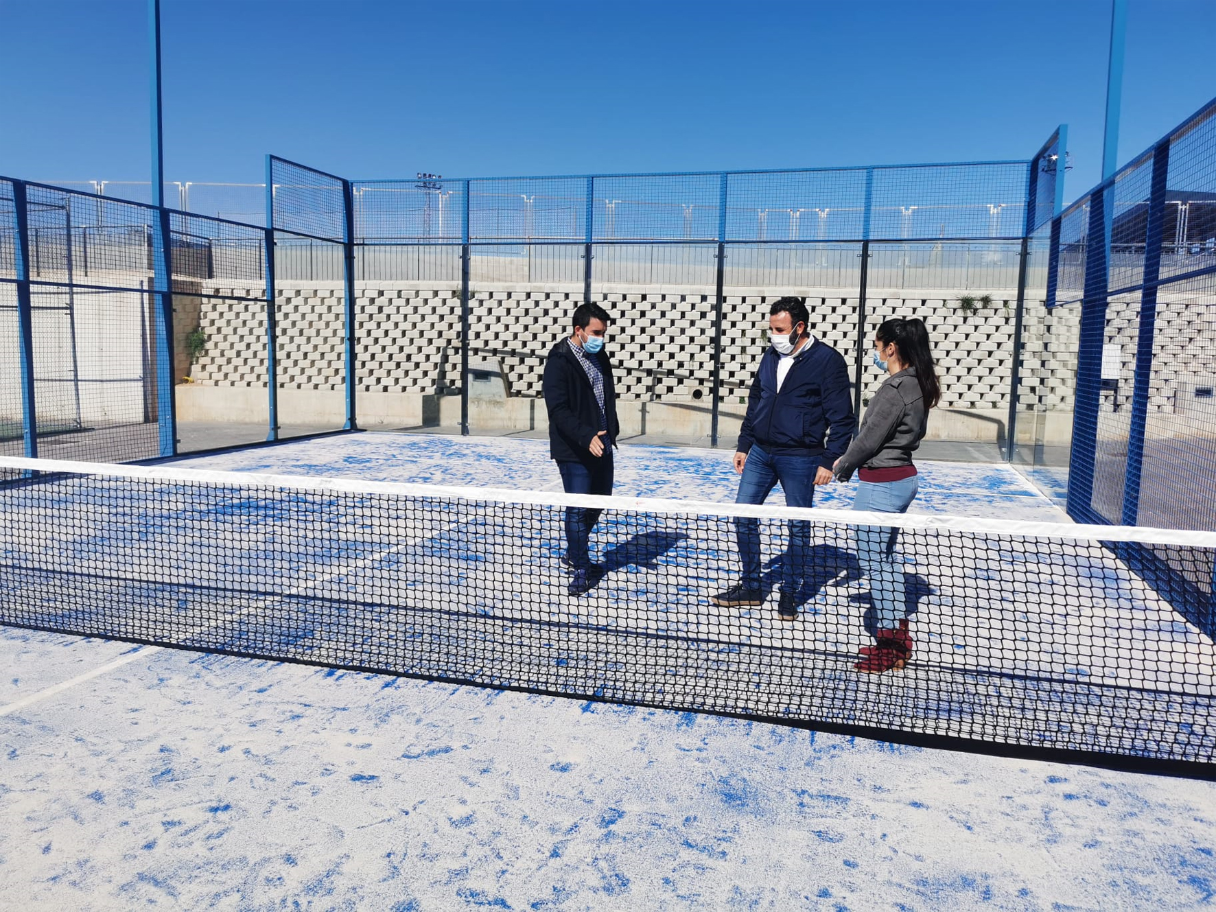 El alcalde de Azuqueca de Henares, José Luis Blanco, junto con la coordinadora del Equipo de Gobierno, Susana Santiago, y el concejal de Retos Deportivos, Enrique Pérez de la Cruz, visitaba este miércoles, 14 de octubre, las pistas de pádel del complejo San Miguel. "Estas instalaciones son de las más usadas en la ciudad ya que contamos con muchas y muchos aficionados a este deporte y la superficie de juego se encontraba bastante deteriorada debido al uso", explica el edil, quien añade que la renovación del césped artificial, acometida por la empresa Quality Sport 2014, SL, ha supuesto una inversión de 23.783,76 euros, IVA incluido.Los trabajos, que están muy avanzados y se completarán en los próximos días, contemplan la instalación de césped artificial de "alta calidad, en concreto, por metro cuadrado, la densidad de la fibra es de 8.800 Dtex y las puntadas, de 50.400, con una unión a la base de dos capas", detalla Enrique Pérez. Además de la sustitución de la superficie de juego, la empresa adjudicataria ofrece un plan de mantenimiento y una garantía de cuatro años desde la instalación.
