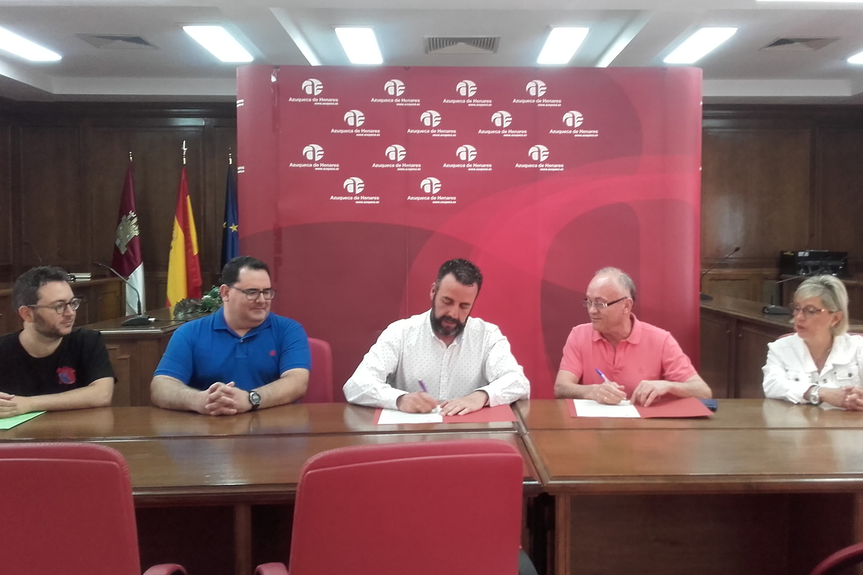 El alcalde azudense, José Luis Blanco, y el presidente de la Banda de Música de Azuqueca, Juan Antonio Martínez Lara, han firmado la renovación del convenio anual de colaboración en el que se fija como objetivo el fomento de la cultura y del aprendizaje musical. Como el año pasado, el Ayuntamiento destinará 25.000 euros al funcionamiento de la Banda, que suma alrededor de 60 integrantes. El Ayuntamiento pone además a disposición de este colectivo el local de ensayo -en estos momentos, junto al Ayuntamiento- y los instrumentos necesarios para desarrollar su actividad. El primer edil, José Luis Blanco, ha destacado el papel de la Banda en la actividad cultural y social de la ciudad. "Todos esperamos los conciertos de San Isidro, septiembre, Navidad y Santa Cecilia, entre otras actuaciones", señala el regidor, que ha recordado que la agrupación tendrá su sede definitiva en el nuevo espacio cultural que se está construyendo en el antiguo cuartel de la Guardia Civil.