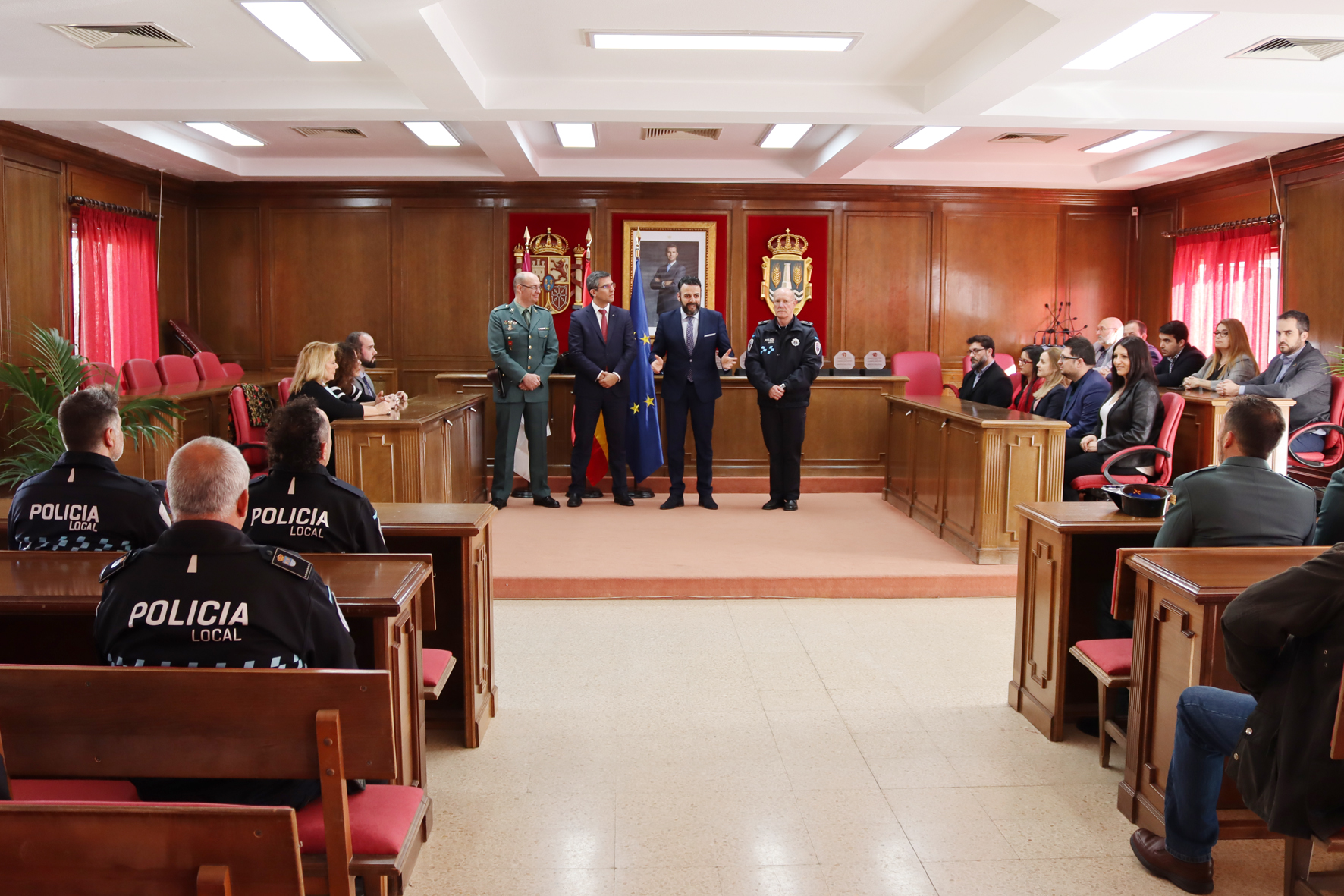 Homenaje en el Ayuntamiento a los policías locales y guardias civiles que participaron en el desalojo de un edificio en llamas y el rescate de una persona