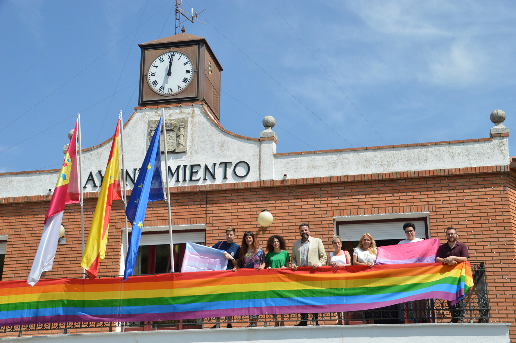 Desde este mediodía, la bandera arcoíris que simboliza al colectivo LGTBI (Lesbianas, Gays, Transexuales, Bisexuales e Intersexuales) preside el balcón del Ayuntamiento de Azuqueca, como muestra del apoyo municipal a las reivindicaciones y a la visibilización de este colectivo. En 2016, el Pleno aprobó por unanimidad una moción del PSOE y de Ciudadanos para prevenir la discriminación por motivos de orientación sexual o afectiva y para favorecer la visibilidad de la diversidad sexual.En la colocación de la bandera, que lucira´en el balcón durante lo que resta de semana, coincidiendo con la celebración este jueves del Día del Orgullo, han participado el alcalde, José Luis Blanco; la concejala de Igualdad, Sagrario Bravo, y las portavoces de los grupos municipales del PP, Aure Hormaechea; de Ciudadanos, Silvia García y de Izquierda Unida, María José Pérez; además de representantes de los colectivos EACEC y Wado, que han exhibido además las banderas de los colectivos bisexual y transexual. "Por una Azuqueca tolerante, solidaria y diversa", ha resumido el acalde, José Luis Blanco. Otras actividadesPor su parte, la asociación EACEC ha organizado este mes distintas actividades en la ciudad: una sobre la situación de las personas migrantes, otra del youtuber Tigrillo y un recorrido en bici siguiendo el callejero LGTBI. Para este sábado, se ha programado a las 18:30 horas el taller 'Liberación de patitos' para niños y niñas de 6 a 12 años, en la Casa de la Cultura (precio: 4 euros; inscripciones en