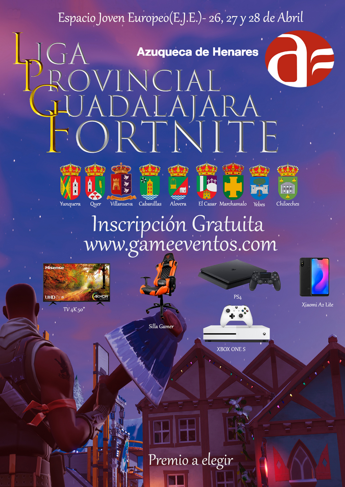 Entre el viernes 26 y el domingo 28 de abril, el Espacio Joven Europeo (EJE) de Azuqueca de Henares acoge la fase local de la Liga Provincial Guadalajara 'Fortnite', un videojuego de acción y construcción. La participación está abierta a mayores de 12 años -los menores de 13 años deben contar con autorización de los padres o tutores legales- y se puede tramitar de manera gratuita en la página web '