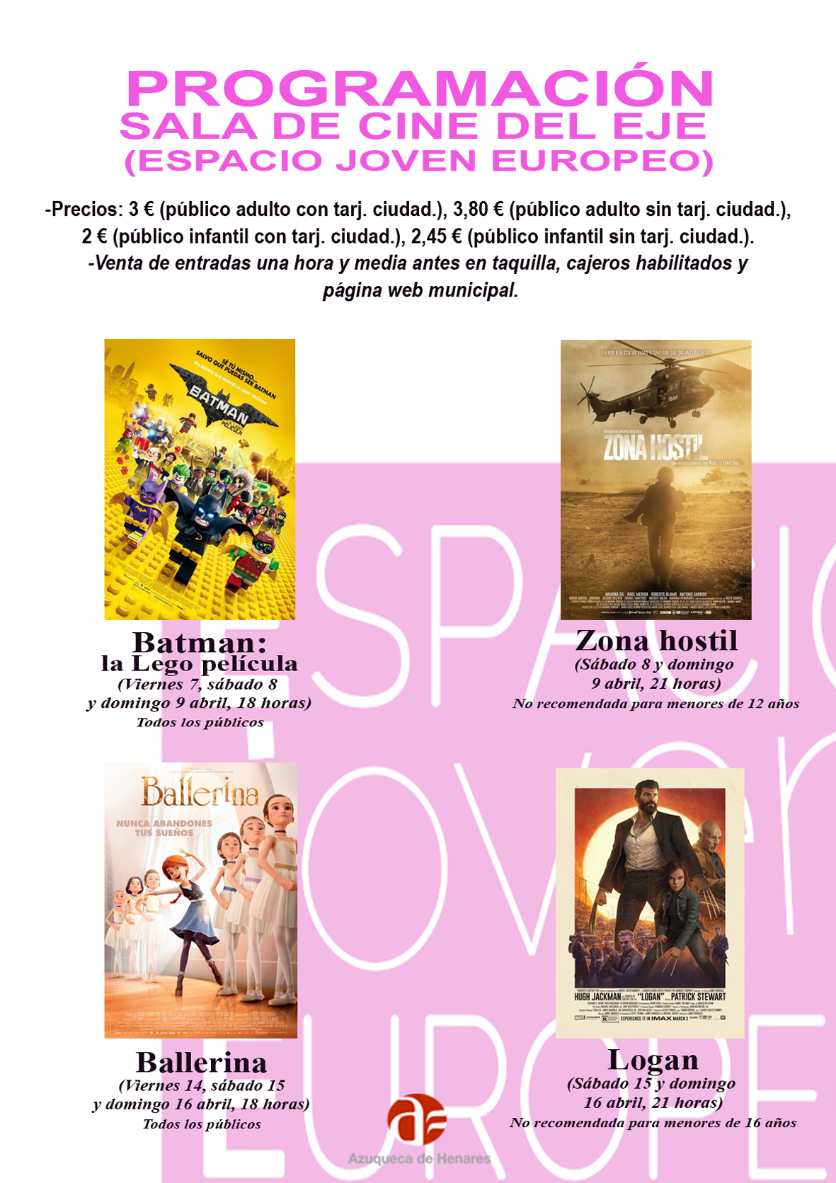 El Ayuntamiento de Azuqueca de Henares ha programado durante el mes de abril el Ciclo de Cine y Paternidad, que contempla la proyección de cuatro películas en la sala del Espacio Joven Europeo (EJE). El ciclo arranca este viernes día 7 con 'Captain Fantastic', protagonizada por Viggo Mortensen y premiada en el Festival de Cannes de 2016 en la categoría de Mejor director.El ciclo se completa con los títulos 'De tal padre, tal hijo' (viernes 14 de abril), 'De padres a hijas' (viernes 21) y, por último, 'Los exámenes' (viernes 28). En todos los casos, la sesión comienza a las 20:30 horas.Cartelera comercialLa cartelera de cine comercial del EJE ofrece este fin de semana dos títulos más. El viernes 7, sábado 8 y domingo 9 de abril, a las 18 horas, se proyecta 'Batman: la Lego Película' (película de animación para todos los públicos). Además, el sábado 8 y el domingo 9, a las 21 horas, se puede ver 'Zona hostil' (no recomendada para menores de 12 años).El precio de las entradas de cine es de 3 euros para los adultos con Tarjeta Ciudadana, 3,80 para el resto de adultos, 2 euros para el público infantil con Tarjeta y 2,45 para el resto de niños. Las entradas se podrán adquirir en los cajeros ciudadanos, en www.azuqueca.es (pinche aquí) y, en la taquilla del EJE, una hora y media antes del inicio del pase.ExposicionesAdemás, durante estos días se pueden visitar en Azuqueca las siguientes exposiciones:-'Estéticas del ritmo y la profusión'. Hasta el 11 de abril, en la sala de exposiciones de la Casa de la Cultura. Intervención del artista José Luis Panea.
