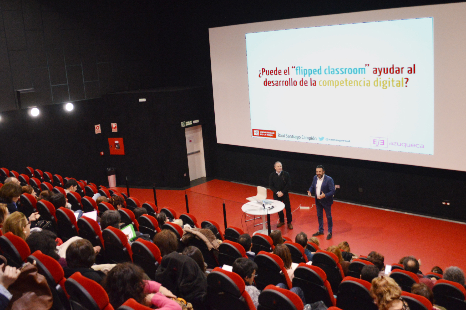 El Espacio Joven Europeo (EJE) de Azuqueca de Henares acogió en la tarde de este jueves, 25 de enero, una lección magistral sobre Flipped Classroom o aprendizaje invertido, que impartió Raúl Santiago, doctor en Ciencias de las Educación de la Universidad de Navarra y experto universitario en gestión de entidades sin ánimo de lucro de la UNED, además de profesor titular interino en la Universidad de La Rioja.La sesión se centró en este modelo pedagógico que apuesta por el aprendizaje fuera del aula de determinados procesos y utilizar el tiempo de clase para potenciar otros métodos de adquisición y práctica de conocimientos. Esta lección magistral contó con la presencia de jóvenes, de profesionales de la Educación y otras áreas relacionadas con la pedagogía, la formación y la psicología y otras personas interesadas en el Flipped Classroom. El alcalde, José Luis Blanco, recordó que "esta lección magistral es una de las acciones que contempla el programa Iniciativa Puente con el que el Ayuntamiento pretende fomentar y retener el talento local". "Los y las jóvenes sois el futuro y vuestra formación y educación es fundamental para lograr que Azuqueca, y la sociedad en general, avance y siga mejorando", señaló. En este sentido, el primer edil recordó que, para el curso 2017/2018, Iniciativa Puente contempla dos lecciones magistrales (la primera ha sido la dedicada al aprendizaje invertido) y tres ponencias dirigidas al alumnado de los institutos de la localidad (en noviembre, se impartió la primera, sobre intereses profesionales, y enero, se están celebrando sesiones sobre la búsqueda del primer empleo).