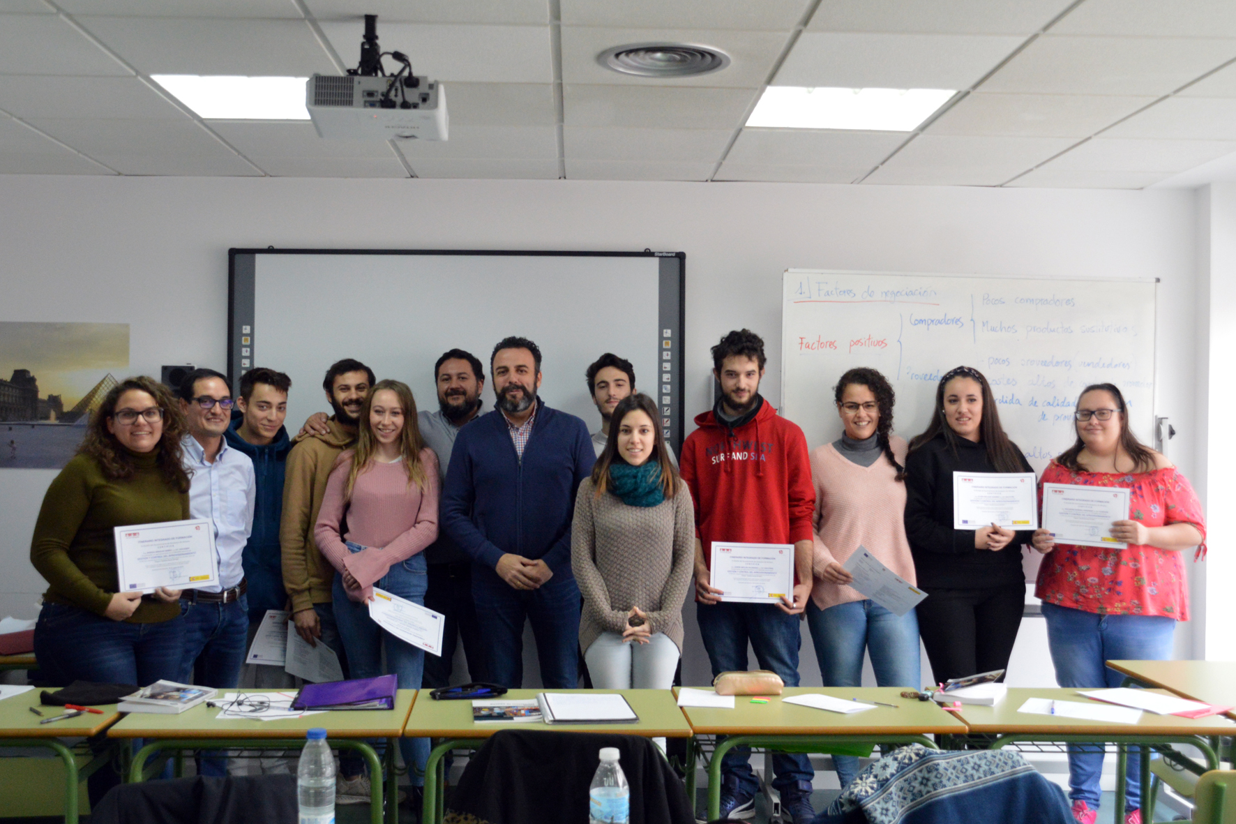 Este martes, han recibido sus diplomas los jóvenes que han completado la parte teórica del itinerario formativo 'Gestión y control del aprovisionamiento' diseñado por el Ayuntamiento de Azuqueca de Henares a través del Programa Operativo de Empleo Juvenil (POEJ), que cuenta con financiación del Fondo Social Europeo (FSE). Mediante esta iniciativa, el Ayuntamiento pretende mejorar la formación y, por tanto, la empleabilidad de jóvenes con edades comprendidas entre los 16 y los 29 años inscritos en el sistema de Garantía Juvenil. El POEJ prevé becas para los participantes de hasta 1.400 euros. Iniciaron la formación 12 jóvenes, tres de ellos han encontrado trabajo, por lo que completan la parte teórica del itinerario 9, cuatro varones y cinco mujeres.José Luis Blanco, el alcalde, ha felicitado a todos ellos que, ahora completarán su formación teórica con 100 horas de prácticas en empresas locales. Entre las compañías que han mostrado su interés en participar en este programa de prácticas están Aguirre & Cía (John Smith), Exide Technologies, el grupo Cárcaba y One2One. "Las empresas nos han trasladado su interés en poder contar con una bolsa potencial de personas formadas de cara a futuras incorporaciones a sus plantillas", señala Blanco.El segundo de los itinerarios previstos es 'Operador de carretillas elevadoras y radiofrecuencia'. La formación teórica comenzó este lunes, día 21, y se prolongará hasta finales de abril en las instalaciones municipales de El Foro. Participan 8 hombres y cuatro mujeres. En febrero, arrancará el tercero de los itinerarios, 'Organización del transporte y la distribución'. Los interesados en participar deben dirigirse al Centro de Empresas Azuqueca Emprende (avenida de los Escritores, 10-12; teléfono 949 27 71 28 y correo electrónico iniciativapuente@azuqueca.net).