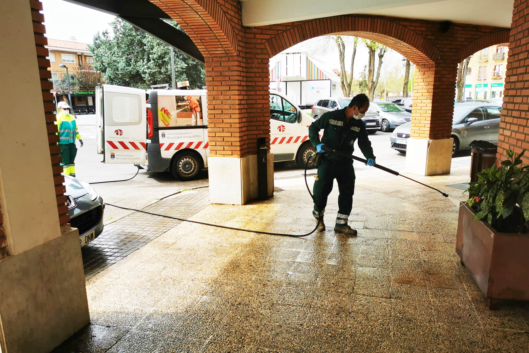 El Ayuntamiento de Azuqueca de Henares está realizando labores de desinfección en el municipio. "Los tratamientos han comenzado en aquellas zonas con mayor tránsito de vecinos y vecinas, en concreto, los alrededores del Centro de Salud, Estación de Renfe y supermercados", explica el concejal de Economía Circular, Sergio de Luz. También se ha limpiado el exterior de la Casa Consistorial, que mantiene la atención al público para asuntos urgentes (mañanas, de 8 a 15 horas), así como de los edificios de la Policía Local, el Centro Social de la calle Las Eras, donde se entregan los vales del Programa de Apoyo Nutricional, y el Centro de la Mujer. "El objetivo es poder aplicar los tratamientos en todas las calles del municipio", aclara.