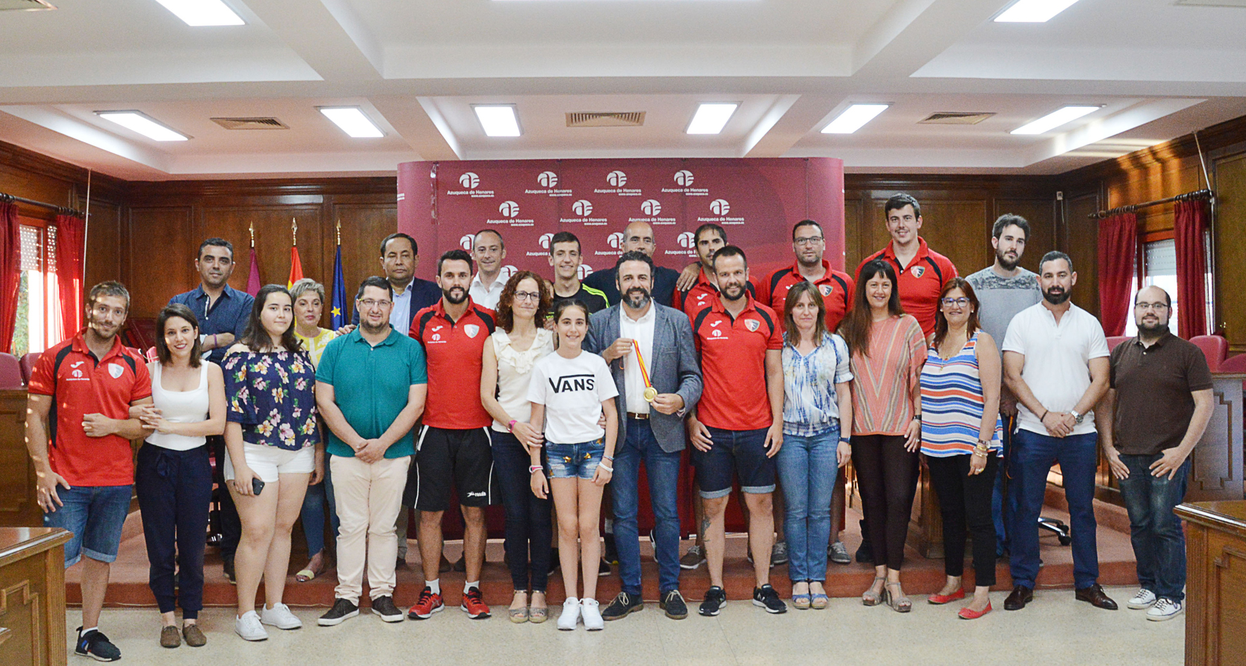 El alcalde de Azuqueca de Henares, José Luis Blanco, ha recibido en el Ayuntamiento al equipo Sénior de la sección Playa del Club Deportivo Balonmano local, campeón de la IV Copa de España. El primer edil ha felicitado a la directiva, al cuerpo técnico y a los jugadores por el título conseguido el domingo 10 de junio en Torrox (Málaga)."Es un orgullo poder contar en la ciudad con deportistas de primer nivel", ha señalado José Luis Blanco, quien ha destacado que "el equipo, con apenas un año de existencia, ha logrado ganar la Copa con trabajo, esfuerzo, compromiso e ilusión". También se ha referido a la calidad de los jugadores del Palletways Verallia Azuqueca con, entre otros, el vecino de Azuqueca, Jaime Osborne, seleccionador nacional, o Julio Sierra y Manuel Rodríguez, preseleccionados para la Selección Española Absoluta. "La temporada del Balonmano Playa acaba de comenzar y confiamos en que podáis sumar más triunfos", ha dicho Blanco.El acto, celebrado en la tarde del martes 19 de junio en el Salón de Plenos, contó también con la asistencia del concejal de Deportes, Sergio de Luz, además de la portavoz del equipo de Gobierno, Sagrario Bravo, la edil de Juventud, Carmen Luque, y los tres concejales del grupo municipal de Ciudadanos en el Ayuntamiento. También asistieron representantes de las dos compañías que patrocinan el equipo, Verallia y Palletways-Los Tititos.