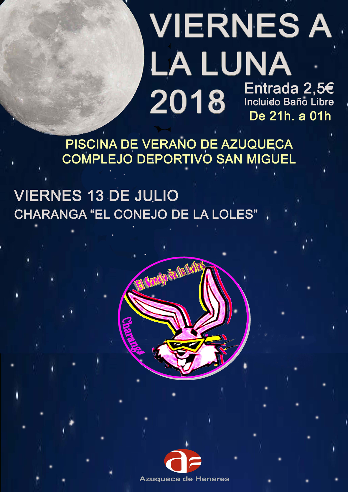 La agenda de actividades en Azuqueca de Henares para este fin de semana incluye la segunda sesión del programa municipal 'Viernes a la luna', cine y títeres. La piscina de verano, ubicada en el complejo San Miguel, abrirá sus puertas este 13 de julio, de 21 horas a 1 de la madrugada, para albergar un nuevo 'Viernes a la luna', que contará con la presencia de la charanga local 'El conejo de la Loles'. Las entradas cuestan 2 euros, con baño libre incluido. Pueden adquirirse de manera anticipada (hasta las 15 horas del viernes) en los cajeros ciudadanos disponibles en El Foro, la Casa de la Cultura, el EJE y el Ayuntamiento, o bien, el mismo viernes, en taquilla, antes del comienzo de la actividad. En cuanto al cine, se van a proyectar tres películas en la sala de Espacio Joven Europeo (EJE). Por un lado, dentro de la programación estival 'Un verano para recordar... Cine de verano', este viernes, a las 20:30 horas, se puede ver 'Florida Project'. El precio es de 2 euros. Por el otro, los títulos de la cartelera comercial de este fin de semana son 'Luis y los alienígenas' (todos los públicos), con sesiones el viernes, sábado y domingo, a las 18 horas, y '¡Qué guapa soy!' (no recomendada para menores de 7 años), el sábado y domingo, a las 21 horas. Las entradas cuestan, con Tarjeta Ciudadana, 3 euros (público adulto) y 2 euros (público infantil) y, sin este documento municipal 3,80 y 2,45 euros, respectivamente. Las localidades para el cine se pueden adquirir en los cajeros ciudadanos, en esta web municipal (pinche AQUÍ) y en taquilla, el mismo día del pase, una hora y media antes del inicio. Títeres en el parque de La QuebradillaLas propuestas se completan con la segunda jornada de 'Titiriqueca', que impulsa el Circuito de Títeres del Henares durante los meses de verano en distintos puntos de Azuqueca. Este sábado 14, a partir de las 20:30 horas. La compañía madrileña Ñas Teatro presenta en el parque de La Quebradilla la obra 'Tragón, el dragón', que combina narración oral, interpretación, música, canciones, siluetas y sombras chinas.