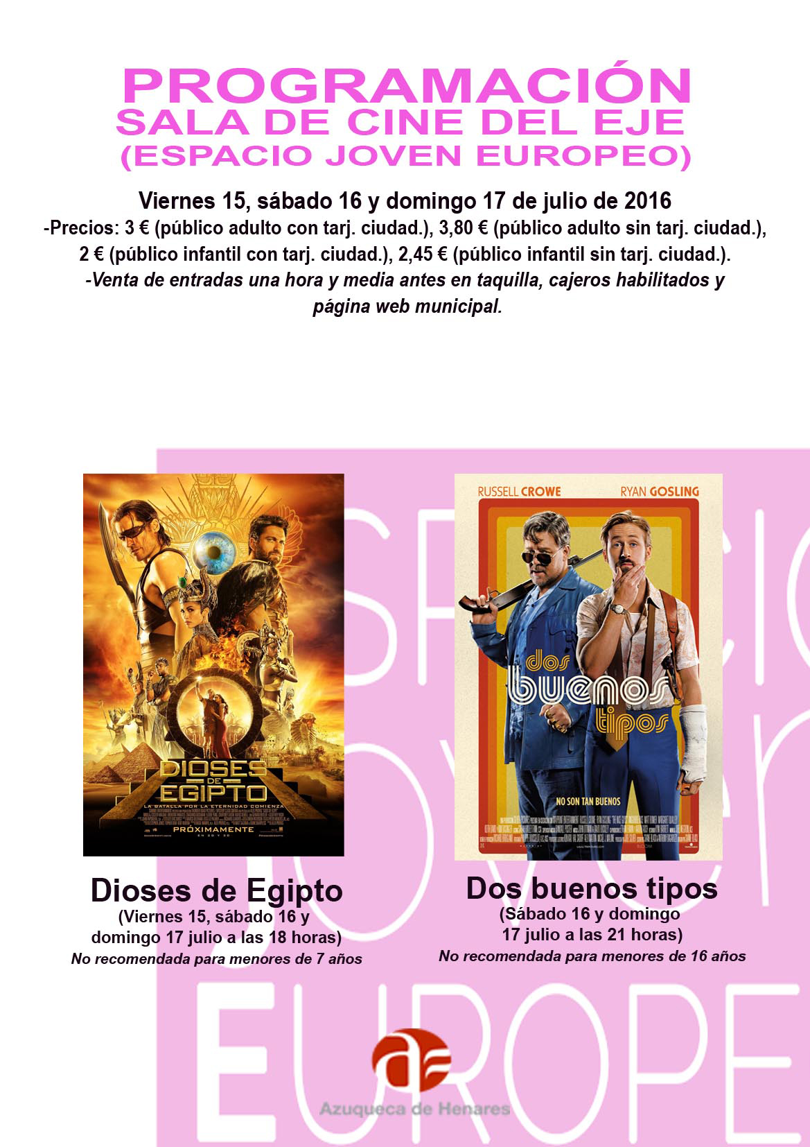 El viernes comienza con proyección de la película cómica española ‘Embarazados’ en el patio del antiguo cuartel de la Guardia Civil, a las 22 horas. Las entradas cuestan 2 euros.El mismo día, en en el EJE y en horario de tarde, se proyectará 'Dioses de Egipto'. Esta cinta no está recomendada para menores de 7 años. Habrá un pase para el viernes a las 18 horas y otro para el sábado en el mismo horario.También en el EJE este fin de semana, en este caso el sábado y el domingo a las 21 horas, se proyectará la película ‘Dos buenos tipos’, no recomendada para menores de 16 años. Los titulares de la Tarjeta Ciudadana deben abonar 3 (adultos) y 2 euros (niños) y, quienes no tengan este documento municipal, 3,80 y 2,45 euros, respectivamente. Las entradas de todas las películas, tanto las que se proyectarán en el antiguo cuartel, como las que lo harán en el EJE, se pueden adquirir de manera anticipada en la web municipal (AQUÍ) y en los cajeros ciudadanos habilitados, o bien, el mismo día, en taquilla, una hora y media antes.