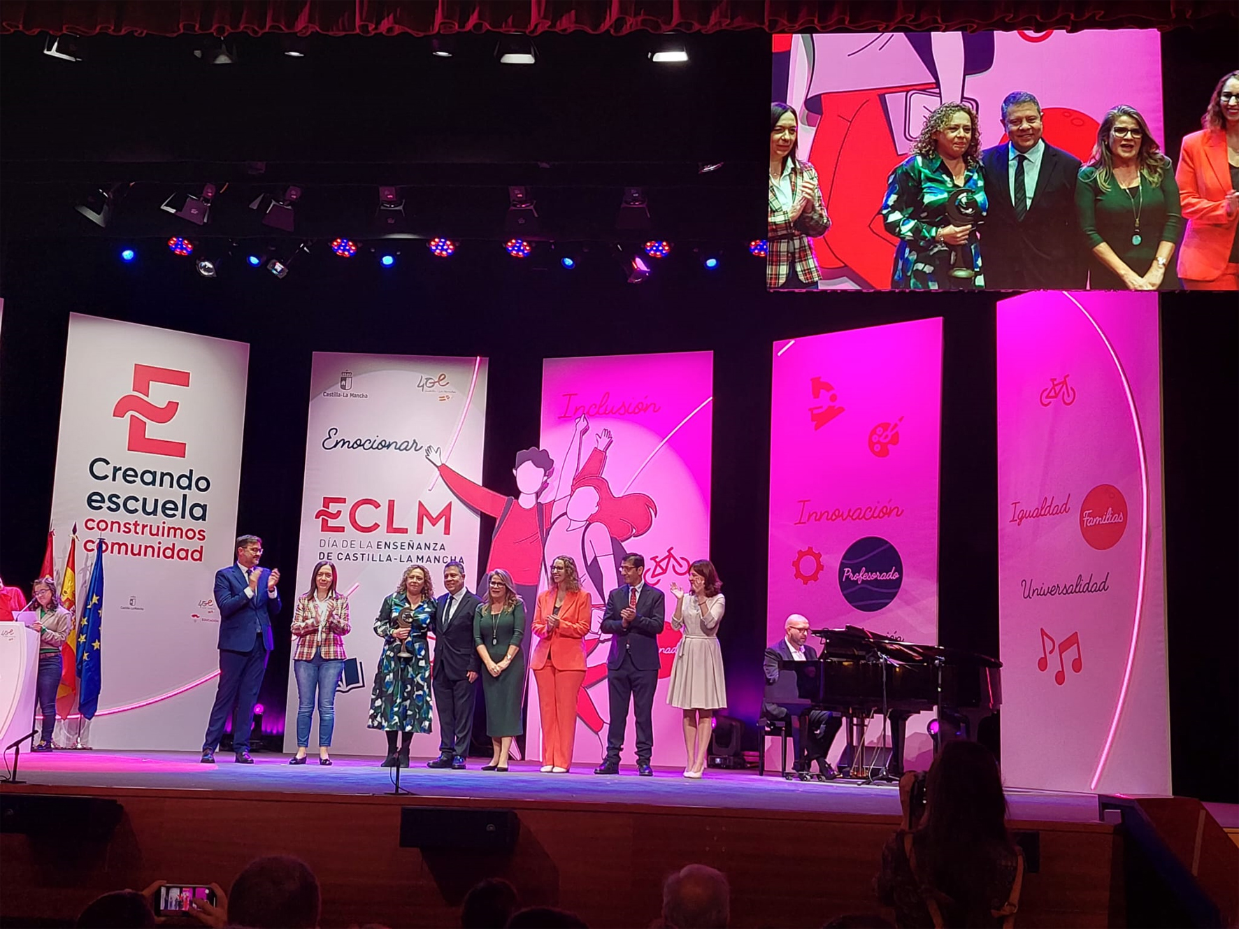 En el acto, celebrado en Alcázar de San Juan (Ciudad Real) y presidido por el presidente de Castilla-La Mancha, Emiliano García-Page, la Junta ha entregado un total de 36 reconocimientos para distinguir la labor realizada durante el pasado curso 2022/2023. “El Gobierno Regional ha querido poner en valor al CEIP Siglo XXI por ser un centro pionero en la provincia de Guadalajara en la escolarización de alumnado con necesidades educativas especiales”, explica la concejala de Educación Global, Susana Santiago, que, junto con el edil de Azuqueca Futuro, Enrique Pérez de la Cruz, ha acudido a la gala.