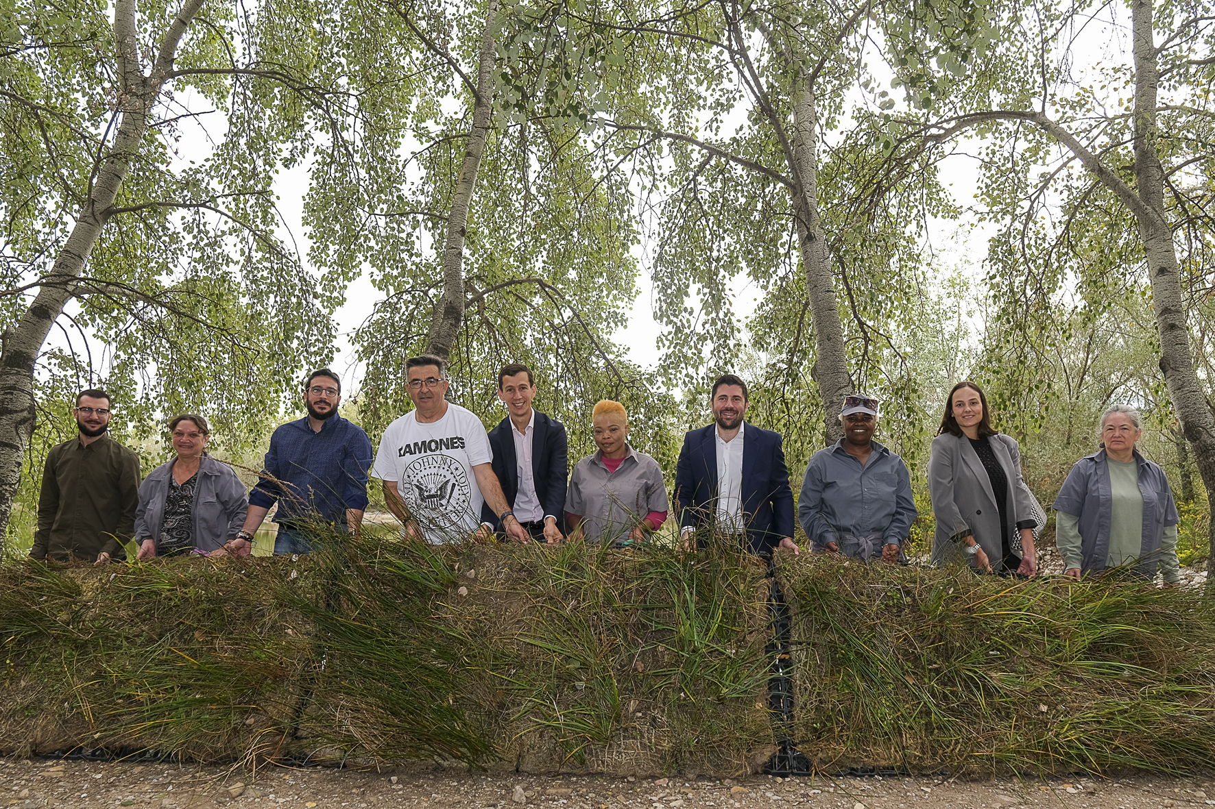 El alcalde, el concejal de Desarrollo Sostenible, representantes de Logicor, el técnico de la Reserva y trabajadoras del Plan de Empleo. Fotografía: Ayuntamiento de Azuqueca
