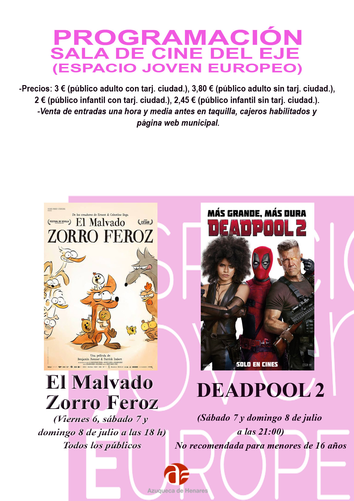 El cine de verano programado por el Ayuntamiento de Azuqueca para esta temporada lleva por título 'Un verano para recordar... Cine de aventuras'. Desde este viernes, 6 de julio, hasta el último viernes de agosto, día 31 (con la única salvedad del 17 de agosto, jornada en la que se cerrará la sala de proyecciones del EJE), se proyectarán "películas destinadas al público familiar, cine de aventuras de verano con niños o adolescentes y algunos remakes, como 'Jumanji' o 'Cazafantasmas'", según adelanta la concejala de Cultura, Sagrario Bravo. "Es un ciclo familiar y veraniego que este año se podrá ver en el EJE, debido a las obras que afectan el lugar que acogía tradicionalmente el cine de verano: el patio del antiguo cuartel", añade la edil. La cinta que abre este programa es 'Cuenta conmigo'.Todas las proyecciones darán comienzo a las 20:30 horas y las entradas cuestan 2 euros. La venta anticipada se canaliza a través de los cajeros ciudadanos y de esta página web (AQUí). Las localidades también se podrán adquirir antes de cada proyección en la taquilla del EJE. La programación completa es la siguiente:- 6 de julio: 'Cuenta Conmigo'.- 13 de julio: 'Florida Project'.- 20 de julio: 'Wonderstruck'.- 27 de julio: 'Little Boy'.- 3 de agosto: 'Cazafantasmas' (versión de 2016).- 10 de agosto: 'The Kings of Summer'.- 17 de agosto: el cine permanecerá cerrado. - 24 de agosto 'Jumanji' (versión de 2017).- 31 de agosto: 'Los Bicivoladores'.Este fin de semanaPor otra parte, la cartelera comercial del EJE para este fin de semana incluye dos películas: la infantil 'El malvado Zorro feroz (viernes, sábado y domingo, a las 18 horas) y 'Deadpool 2' (sábado y domingo, a las 21 horas). Las entradas cuestan, con Tarjeta Ciudadana, 3 euros (público adulto) y 2 euros (público infantil) y, sin este documento municipal 3,80 y 2,45 euros, respectivamente. Pueden adquirirse en los cajeros ciudadanos, en esta web municipal (pinche AQUÍ) y en la taquilla, el mismo día del pase, una hora y media antes del inicio de la proyección.