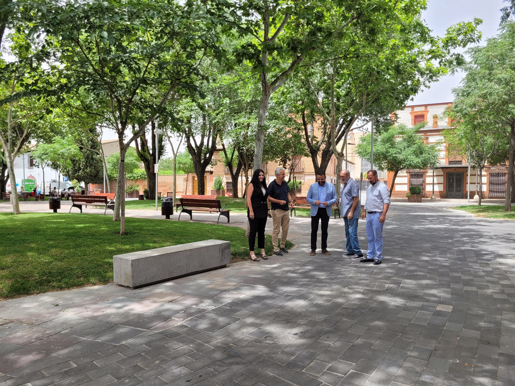 Visita a las obras finalizadas en la plaza del General Vives. Fotografía: Ayuntamiento de Azuqueca