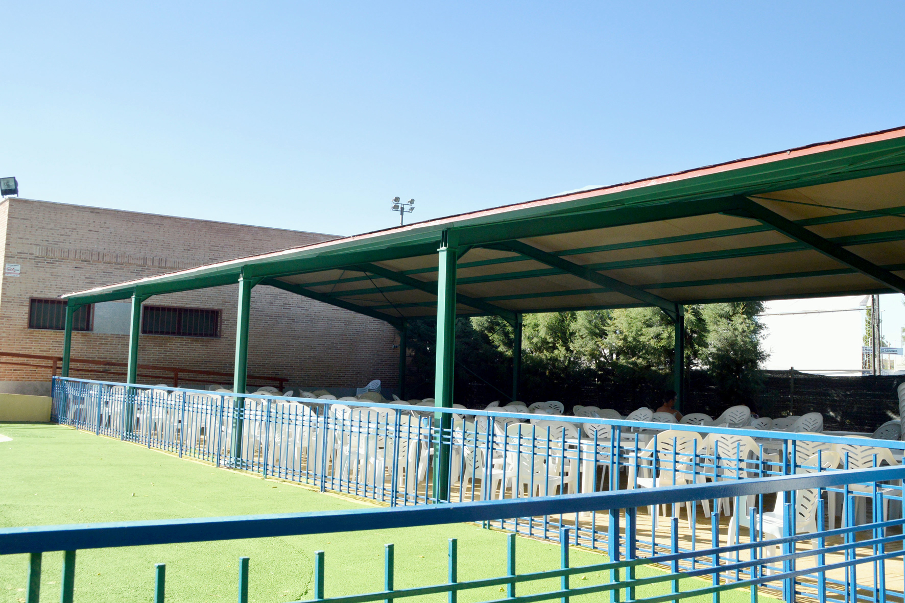 El bar restaurante se ubica en un edificio con acceso desde la piscina de verano y el campo municipal de fútbol 11 y que alberga además vestuarios, aseos, oficinas y almacenes. El local tiene una superficie construida de 104 metros cuadrados y dispone de barra (20,40 metros cuadrados y 9 metros lineales), cocina (13,55 metros cuadrados) y un espacio interior de mesas (59,2 metros cuadrados). También se contemplan varios espacios de uso no exclusivo del bar restaurante, en concreto, un distribuidor general y acceso, aseos masculinos y femeninos y terraza en el lado del campo de fútbol (25 metros cuadrados aproximadamente) y de la zona de piscina (unos 90 metros cuadrados, en su mayoría, cubiertos por un porche).