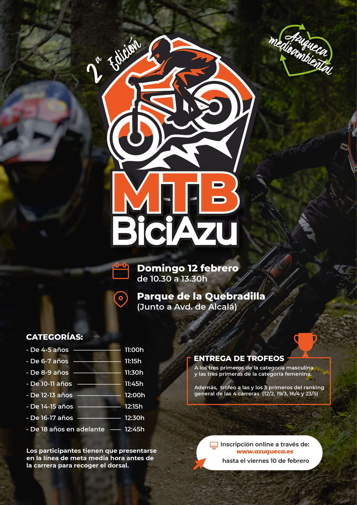 El Ayuntamiento de Azuqueca de Henares lanza la segunda temporada de BiciAzu, que incluye cuatro carreras MTB (bicicleta de montaña) en el parque de La Quebradilla. “La buena respuesta obtenida el año pasado nos ha animado a repetir la experiencia”, afirma el alcalde, José Luis Blanco, quien recuerda que la iniciativa forma parte del programa ‘Azuqueca medioambiental’. “Una de las líneas de este programa se centra en el fomento de una movilidad sostenible, ya sea en bicicleta o a pie, en los desplazamientos por la ciudad para, de este modo, reducir el uso del vehículo privado”, apunta. Para ello, el Ayuntamiento desarrolla varias iniciativas como “BiciColes, que premia al alumnado que más utilice la bici para llegar a su centro educativo, o estas carreras MTB’.