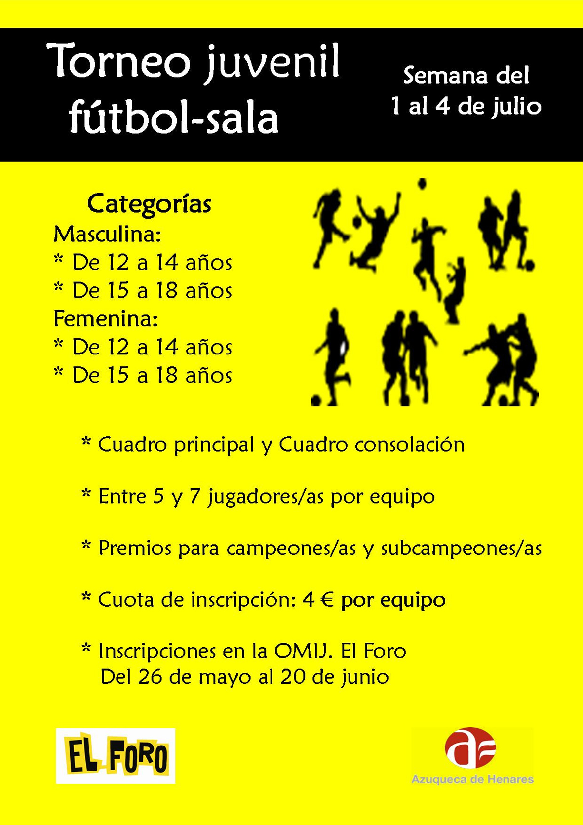 Azuqueca de Henares acoge en los próximos meses varias citas deportivas relacionadas con el fútbol sala. Por un lado, el fin de semana del 13, 14 y 15 de junio, se celebra una nueva edición del Maratón de Fútbol Sala, que se dirige a mayores de 16 años. Los equipos deben tener 9 jugadores como mínimo y 15 como máximo. "El sistema de competición se establecerá en función del número de conjuntos inscritos", aclara el concejal de Deportes, José Luis Escudero. "Los cuatro primeros equipos clasificados en la edición de 2013 serán cabezas de serie y, en caso de haber fase previa eliminatoria, estarán exentos", explica el edil, quien avanza que "el sorteo de los cruces se ha programado para el 9 de junio, a las 19 horas, en el pabellón Ciudad de Azuqueca".La inscripción ya está abierta y se cierra a las 20 horas del 5 de junio. Las personas interesadas pueden formalizar su participación en la oficina del Servicio Municipal de Deportes (pabellón Ciudad de Azuqueca, calle Ana María Matute, s/n) o escribiendo un correo electrónico a pinchando aquí.Torneo JuvenilPor otra parte, del 1 al 4 de julio se disputa la primera edición del Torneo Juvenil de Fútbol Sala. "Es una actividad que hemos puesta en marcha a petición de los propios jóvenes", destaca la concejala de Juventud, Sagrario Bravo. "Se han establecido dos categorías, en masculino y femenino, de 12 a 14 años y de 15 a 18 años, y el sistema de juego contará con un cuadro principal y otro de consolación", detalla la edil. Los equipos deben tener entre 5 y 7 jugadores y habrá premios para los campeones y subcampeones.La cuota es de 4 euros por equipos y la inscripción permanece abierta hasta el 20 de junio en la Oficina Municipal de Información Juvenil (OMIJ) de El Foro.Más información sobre el I Torneo Juvenil de Fútbol Sala, pinchando aquí.Cursos de formaciónAdemás, el Ayuntamiento de Azuqueca de Henares impulsa un curso de monitor de fútbol y fútbol sala base, que impartirá la Escuela de Entrenadores de la Federación de Fútbol de Castilla-La Mancha. Está abierto a mayores de 16 años (para poder desarrollarlo, se necesita cubrir un mínimo 20 plazas) y tiene un precio de 150 euros. Más información e inscripciones en el Servicio Municipal de Deportes, en el teléfono 949 27 75 28 y el correo