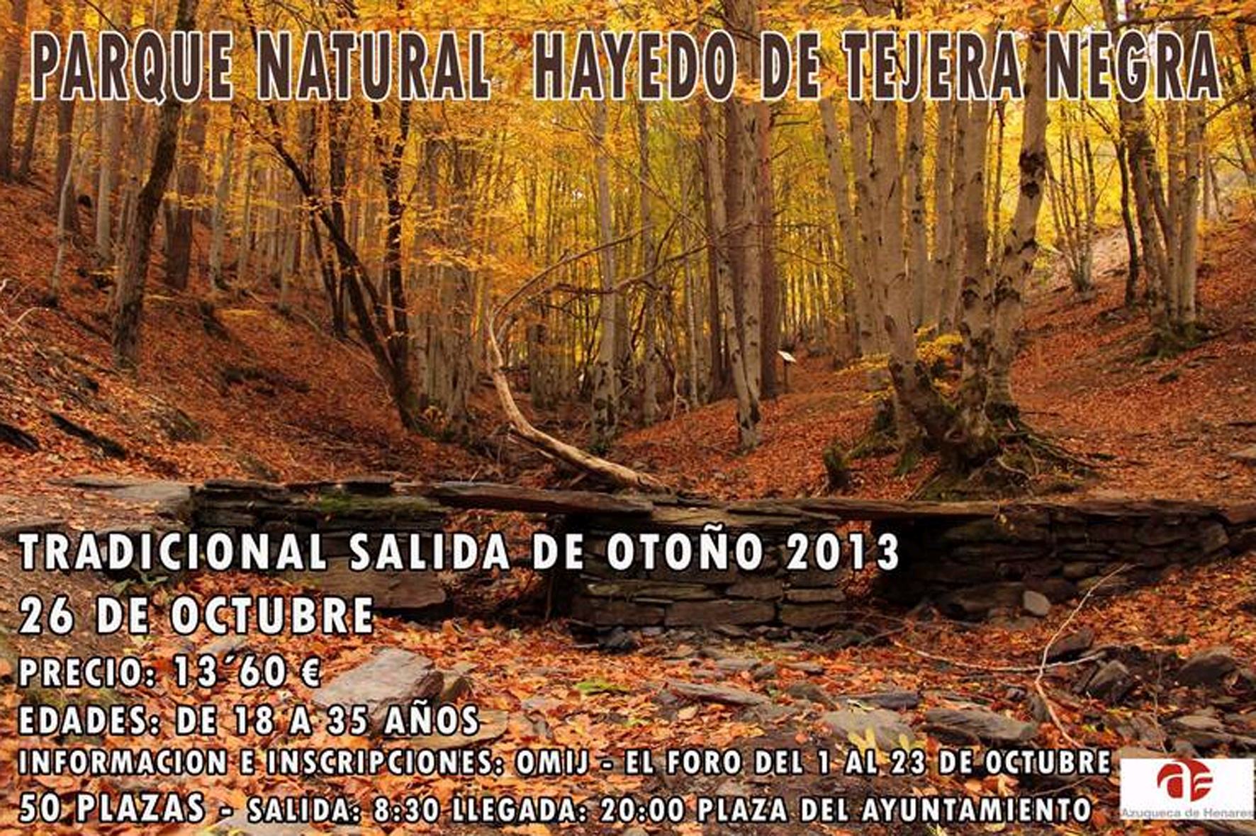 Hasta el 23 de octubre, se mantiene abierto el plazo de inscripción en la salida al Hayedo de Tejera Negra que cada año organiza el Ayuntamiento de Azuqueca de Henares a través de la Concejalía de Juventud. “Se trata de una actividad que repetimos todas las temporadas porque siempre tiene muy buena acogida y nos la demandan los propios jóvenes”, explica la concejala del área, Sagrario Bravo.La salida, que se dirige a mayores de 18 años, se ha programado para el sábado 26 de octubre. Está previsto que el autobús recoja a los participantes a las 8:30 horas en la plaza del Ayuntamiento, donde los dejará de vuelta a partir de las 20 horas. La actividad cuenta con plazas limitadas y el precio es de 13,60 euros. Los interesados deben dirigirse a la Oficina Municipal de Información Juvenil (OMIJ) de El Foro (teléfono: 949 27 75 20; correo electrónico: pinchando aquí.