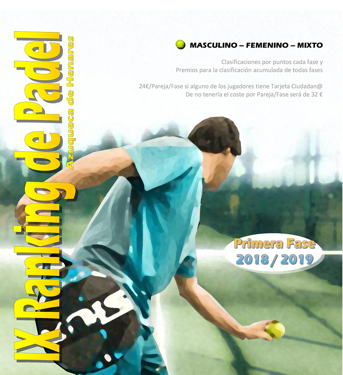 La primera fase del IX Ranking de Pádel que organiza el Ayuntamiento de Azuqueca de Henares se pone en marcha con 95 parejas inscritas, distribuidas entre las tres categorías de juego: absoluta, femenina y mixta. Los cruces comienzan esta semana y la fecha límite de juego es el 13 de diciembre. Todos los partidos se disputan en las instalaciones municipales del San Miguel y en la zona deportiva del Arroyo del Vallejo.La categoría más numerosa es la absoluta, con 67 parejas organizadas en ocho grupos; en femenina, se han inscrito trece parejas, en dos grupos; y, por último, en mixta, hay 19 parejas y se han estructurado tres grupos.Más información, AQUÍ.