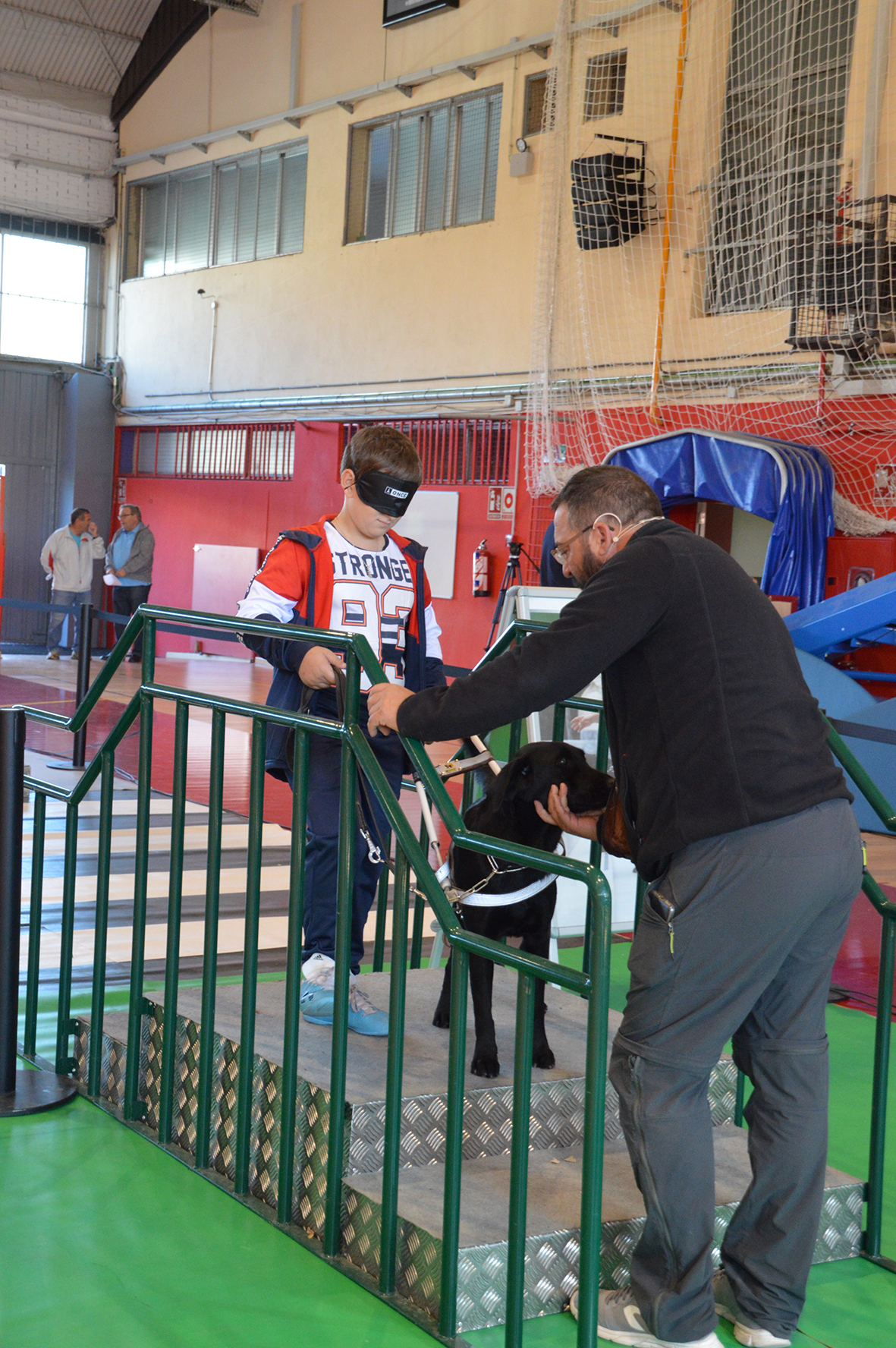 El polideportivo municipal de La Paz ha acogido esta mañana las actividades organizadas por la ONCE de Castilla-La Mancha con motivo del Día Internacional del Bastón Blanco. Alumnas y alumnos del colegio La Paz han tenido la oportunidad de conocer como se forma a los perros guía y han disfrutado de una exhibición llevada a cabo por adiestradores de la escuela que la ONCE tiene en Boadilla del Monte (Madrid) para formar a estos animales. Sobre la pista del polideportivo, se ha acondicionado un circuito en el que los perros guía han mostrado como actúan para ayudar en la vida cotidiana a personas ciegas o con discapacidad visual.Además, en el polideportivo se ha desplegado un bastón blanco gigante, como símbolo de un elemento que ayuda a las personas con problemas de visión a llevar una vida lo más autónoma posible, tal y como ha explicado el presidente del Consejo Territorial de la ONCE, José Martínez, que también ha presentado el bastón blanco y rojo para las personas con sordoceguera.Responsables de la ONCE; el alcalde azudense, José Luis Blanco; y la delegada provincial de Sanidad, Margarita Gascueña, han puesto voz al manifiesto elaborado con motivo del Día Internacional del Bastón Balnco, en el que se reclaman ciudades inclusivas para garantizar el derecho de las personas a desplazarse con independencia y seguridad. En este sentido, el alcalde, José Luis Blanco, ha mostrado el compromiso del Ayuntamiento de Azuqueca, "como ciudad integradora, de adaptar la ciudad e incrementar la sensibilización de la población" y ha asegurado que el Consistorio, que ya ha mantenido varias reuniones con responsables de la ONCE, va a trabajar para eliminar barreras y conseguir que las personas ciegas o con discapacidad visual tengan una vida más autónoma. Por su parte, la directora provincial de Sanidad ha agradecido a la ONCE el trabajo que desarrolla y ha destacado la "sensibilidad" del gobierno regional frente a las necesidades de personas con discapacidades.En el acto han participado además los concejales de Educación Global, Cohesión Social e Igualdad, además de varios representantes de la ONCE: el Delegado Territorial, Carlos Javier Hernández; la Vicepresidenta del Consejo Territorial, Elena Rodriguez; y el Director de la Agencia Administrativa de la ONCE en Guadalajara, Francisco Marfil.