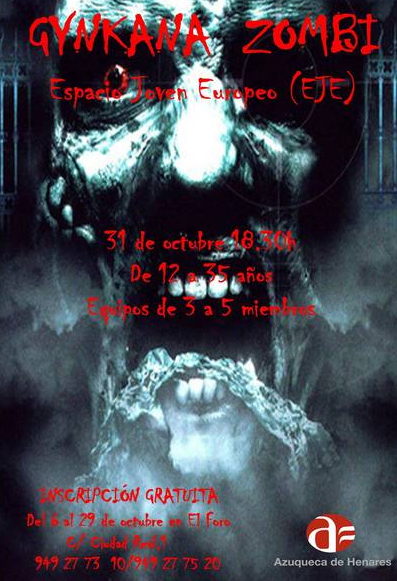 De cara a la noche de Halloween, que se celebra el 31 de octubre, el Ayuntamiento de Azuqueca de Henares ha programado distintas actividades dirigidas principalmente al público infantil y juvenil. El viernes 30 de octubre, la cita es triple: el Pasaje del Terror, que cuenta con la colaboración de la asociación local Azuquelandia, y la II Noche de Ánimas. En el caso del pasaje, la temática de 2015 es 'Camino al infierno' y se podrá visitar desde las 17 a las 22 horas en el sótano del edificio de El Foro. Los menores de 12 años deben completar el recorrido, de 400 metros, acompañados de un adulto. Las entradas cuestan 2,50 euros y se pueden adquirir a través de esta página web (pinche AQUÍ) y en los cajeros ciudadanos, ubicados en la Casa de la Cultura, el Espacio Joven Europeo, el pabellón Ciudad de Azuqueca y el Ayuntamiento.Además, la Biblioteca Municipal Almudena Grandes propone un taller y una sesión de cuentos. El taller 'Cuentos para comérselos. Especial Halloween' se dirige a niños y niñas de 6 a 11 años y se imparte de 17 a 19 horas en la Casita de los Cuentos Eva Ortiz. Hay dos ediciones: el 30 de octubre, que ya tiene el grupo completo, y el 6 de noviembre, que dispone de plazas libres. La inscripción es gratuita y deben formalizarse en la Biblioteca.Por otra parte, en el marco del programa 'Pasaporte Cultural', la Biblioteca impulsa la segunda Noche de Ánimas, en la que el alumnado de los institutos azudenses participa en una sesión de cuentos de terror. La Noche de Ánimas comienza a las 20 horas con una procesión desde la Casita de los Cuentos hasta el salón de actos de la Casa de la Cultura, donde diferentes narradores compartirán sus relatos e historias. Las invitaciones para asistir a esta actividad, que está abierta al público en general, se pueden retirar desde este martes, 27 de octubre, en la Biblioteca.Sábado 31 de octubreEn cuanto al sábado 31, por la mañana, el Centro de Atención Integral a la Infancia (CAII) organiza una fiesta para los más pequeños con dos pases: de 10:30 a 12 horas y de 12 a 13:30 horas. Además, habrá un photocall (11:30 h.), actividades temáticas (12 h.) y un taller de cocina horrorosa (12:30 h.). Se requiere inscripción previa y el precio es de 3 euros. Más información, en el propio CAII (c/ Peña de Francia, 2) y el telefóno 608 01 54 96 (horario de atención, martes y jueves, de 10:30 a 12:30 h. y de lunes a jueves, de 16 a 17 h.).Ya por la tarde, a partir de las 18:30 horas, en el Espacio Joven Europeo será el escenario de una yincana zombi. La actividad se dirige a equipos de 3 a 5 personas con edades comprendidas entre los 12 y los 35 años. La inscripción es gratuita y se puede formalizar hasta el 29 de octubre en la Oficina Municipal de Información Juvenil (OMI) de El Foro (tel: 949 27 73 10 y correo electrónico: