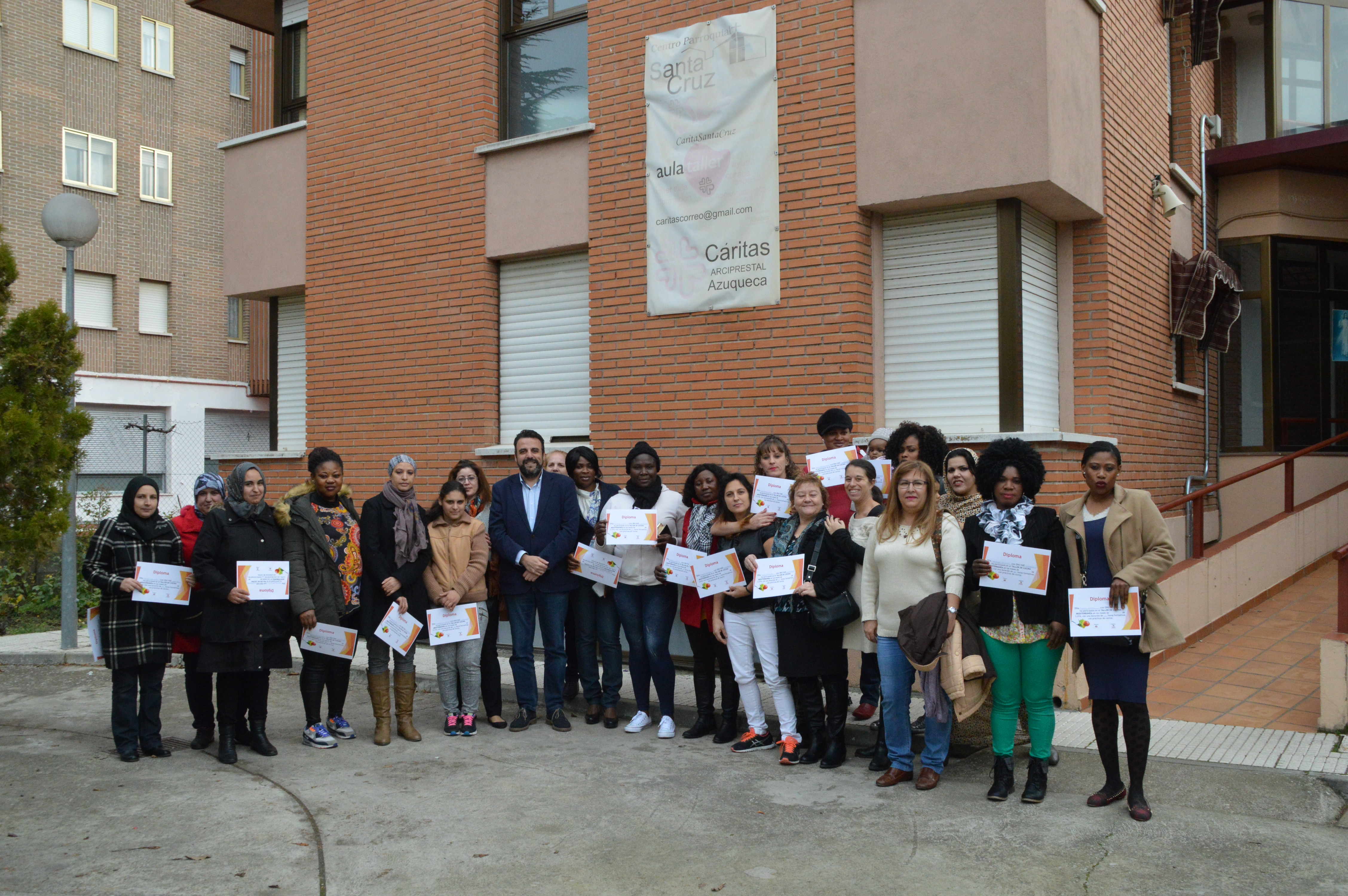 Un total de 20 personas han recibido este miércoles el diploma acreditadito del ‘Taller de cocina, consumo y economía doméstica’, organizado por el Ayuntamiento de Azuqueca de Henares e impartido por Cáritas. El alcalde de Azuqueca, José Luis Blanco y la concejala de Cohesión Social, Elisa Cansado, han entregado los diplomas a quienes han finalizado este curso.Comenzó en el mes de septiembre y, las personas que lo han realizado, han recibido formación sobre alimentación, cocina, procesos con los alimentos, como la conservación, así como un bloque temático específico en economía y ahorro doméstico. Todos los participantes en este curso, cuyo alumnado se ha dividido en dos grupos diferentes, cuentan al final de su formación, con el carné que les acredita como manipulador de alimentos.Este taller se enmarca dentro de las actuaciones del programa Extraordinario por la Cohesión Social (PECS), que el Consistorio impulsa con la colaboración de diferentes organizaciones sociales para evitar situaciones de riesgo de exclusión social.La concejala de Cohesión Social de Azuqueca de Henares, Elisa Cansado, ha señalado que este tipo de iniciativas en el área de la formación “posibilitan la inclusión en el mercado laboral de personas que pueden tener mayores dificultades para encontrar un empleo, ya que les capacita en un área determinada”. Asimismo, Cansado ha manifestado que estos talleres “no sólo suponen un aliciente a nivel formativo, sino también en el ámbito social, ya que fomenta la cohesión social entre sus participantes”.