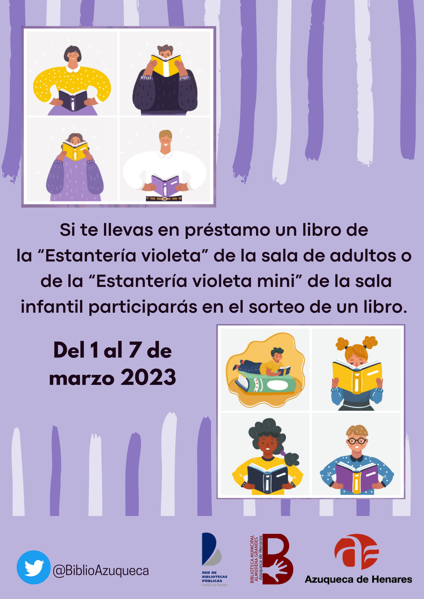 Del 1 al 7 de marzo, si te llevas en préstamo un libro de la “Estantería violeta” de la sala de adultos o de la “Estantería violeta mini” de la sala infantil participarás en el sorteo de un libro.