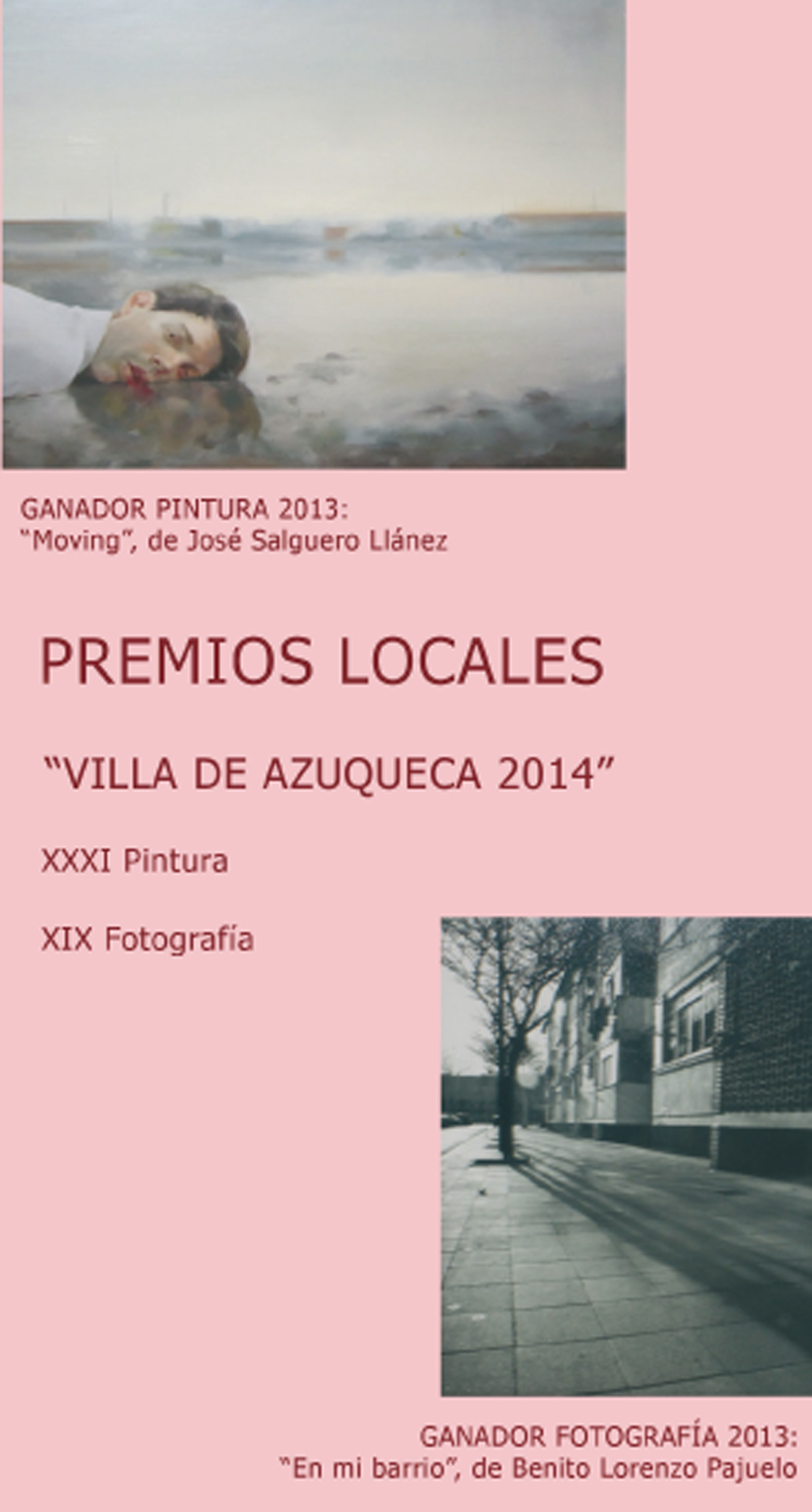 El Ayuntamiento de Azuqueca de Henares ha puesto en marcha la convocatoria de los certámenes locales de Pintura y Fotografía 'Villa de Azuqueca de Henares', que alcanzan las ediciones trigésimo primera y decimonovena, respectivamente. El plazo de presentación de trabajos está abierto hasta el día 25 de abril y en la convocatoria podrán participar artistas mayores de 18 años residentes en Azuqueca de Henares. En Pintura, se establece un único premio dotado con 800 euros, mientras el ganador de la convocatoria de Fotografía recibirá 500 euros.La concejala de Cultura, Sandra Yagüe, ha destacado que "las fotografías presentadas deberán plantear como tema Azuqueca, en cualquiera de sus aspectos: sus gentes, su patrimonio cultural o natural, ya que el Ayuntameinto pretende formar un archivo gráfico de la localidad, a través de la convocatoria de estos certámenes". En el caso de Pintura, se establece que cada participante podrá presentar un máximo de dos obras de estilo y técnica libres (excepto dibujo), mientras en Fotografía, se fija un límite de tres fotografías por autor, en papel fotográfico (no se admiten diapositivas ni reproducciones).Los trabajos se deben presentar en la Casa de la Cultura de lunes a viernes de 10 a 13 o de 17 a 21 horas. Las obras seleccionadas y las premiadas se expondrán entre el 16 y el 27 de mayo y los ganadores recibirán sus premios en el transcurso de un acto público que se celebrará el 17 de mayo, en el marco de las fiestas de San Isidro. Pinche AQUÍ para acceder a las bases de los certámenes.